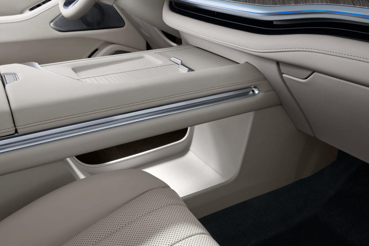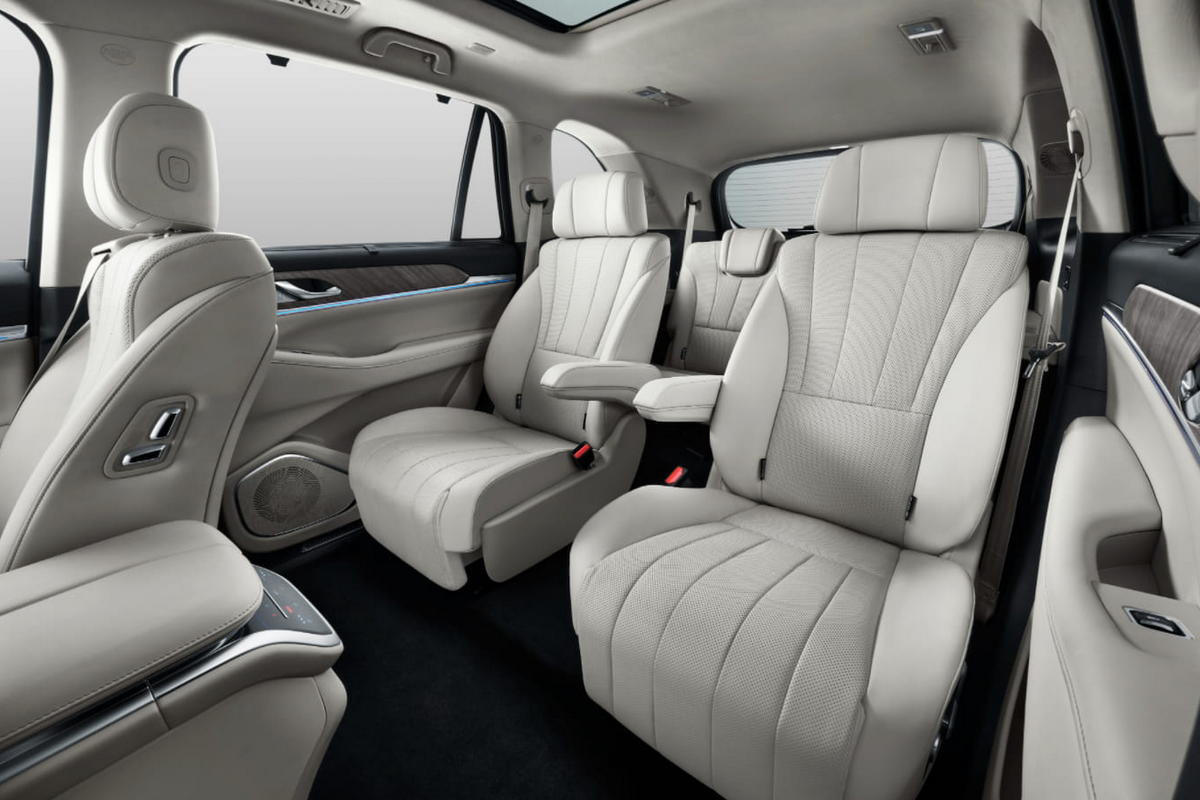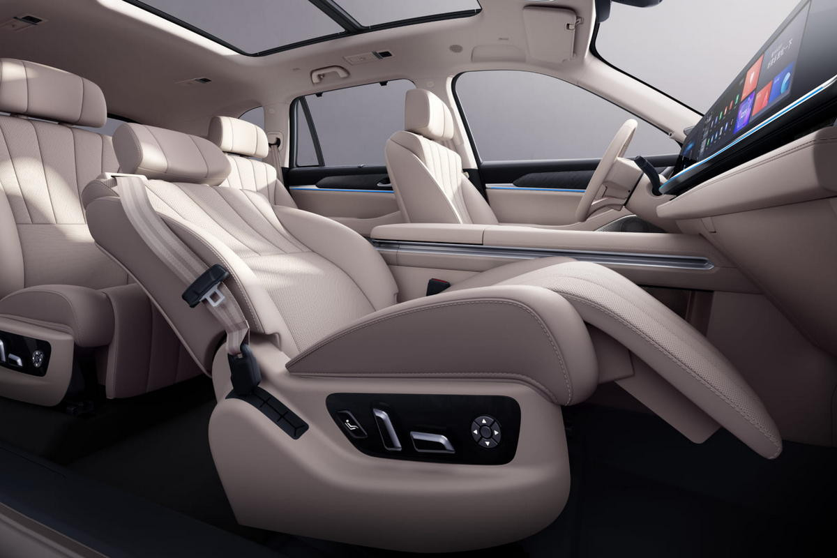Нашей «семерке» обещаны выдвижные ручки дверей, выдвигающиеся пороги, премиальная отделка интерьера, 25-дюймовый проекционный дисплей, подогрев и вентиляция сидений первого и второго ряда (плюс функция массажа), откидной столик.