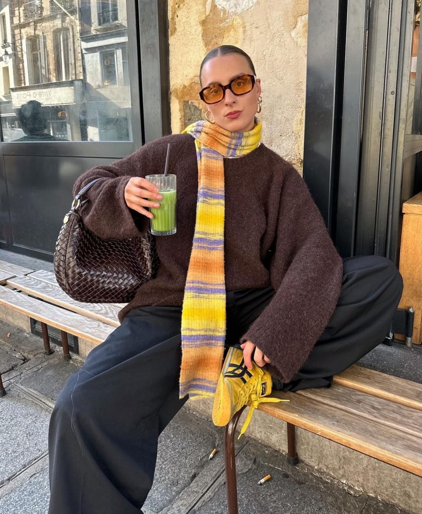 Этой осенью одной из главенствующих эстетик стала Frazzled English Woman, то есть уставшая англичанка. Такая, как героини фильмов «Дневник Бриджит Джонс», «Реальная любовь» и «Представь нас вместе». Они носят уютные свитера и растянутые кардиганы, небрежно повязывают шарф и натягивают шапку, а еще закалывают волосы крабиком и почти не красятся.