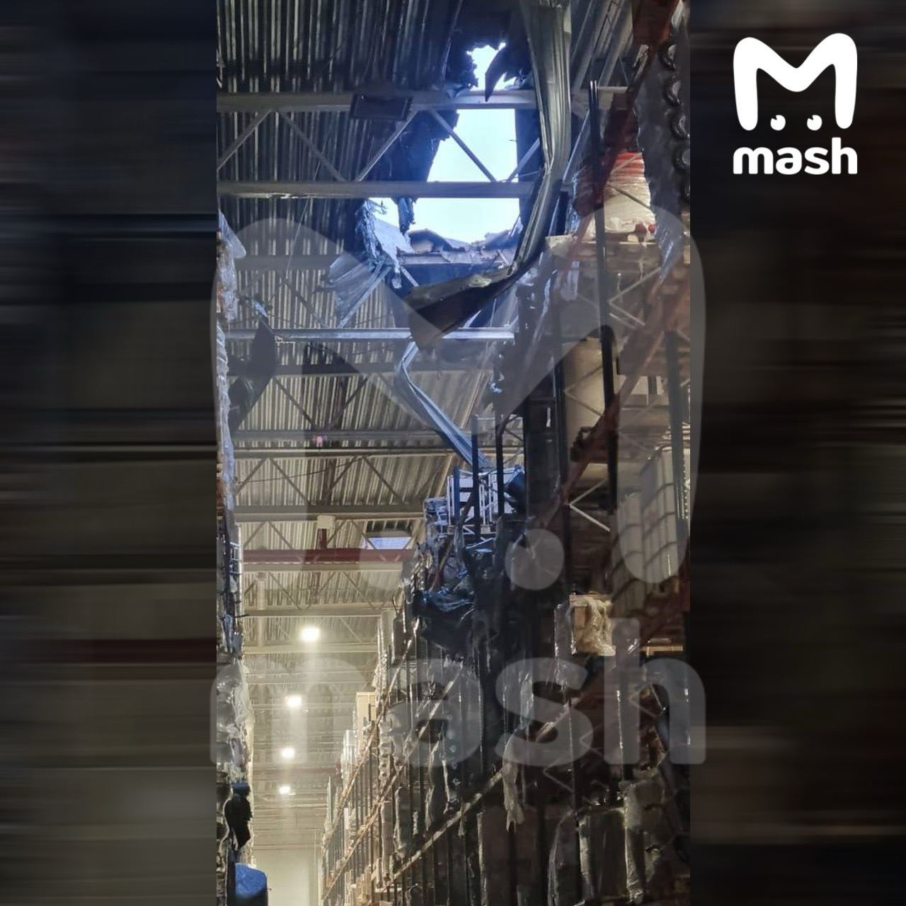 Момент уничтожения украинского дрона в районе столичного аэропорта Домодедово. Обломки упали на расположенный рядом склад.