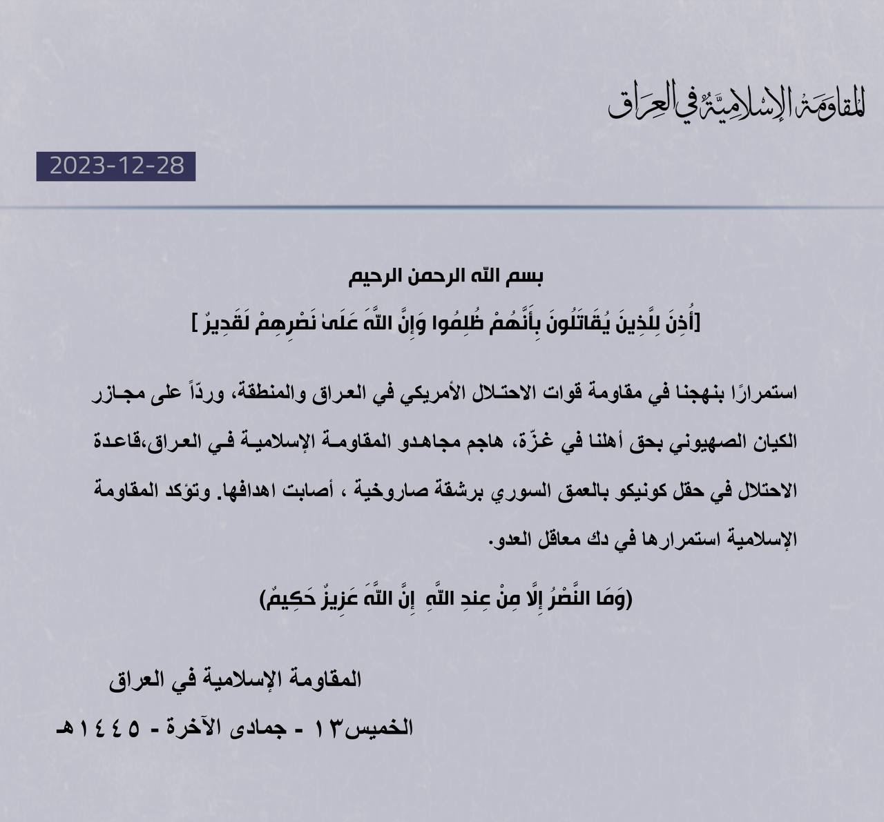 🇮🇶🇺🇸 «Исламское сопротивление в Ираке» нанесло удар по военной базе США Конико в Сирии