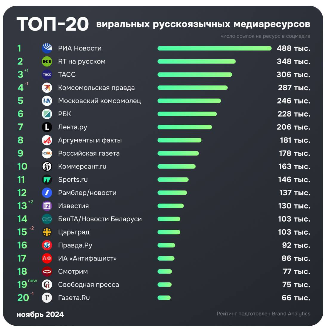 RT и РИА Новости возглавляют топ медиаресурсов, которые формируют информационное поле в стране. Горжусь!