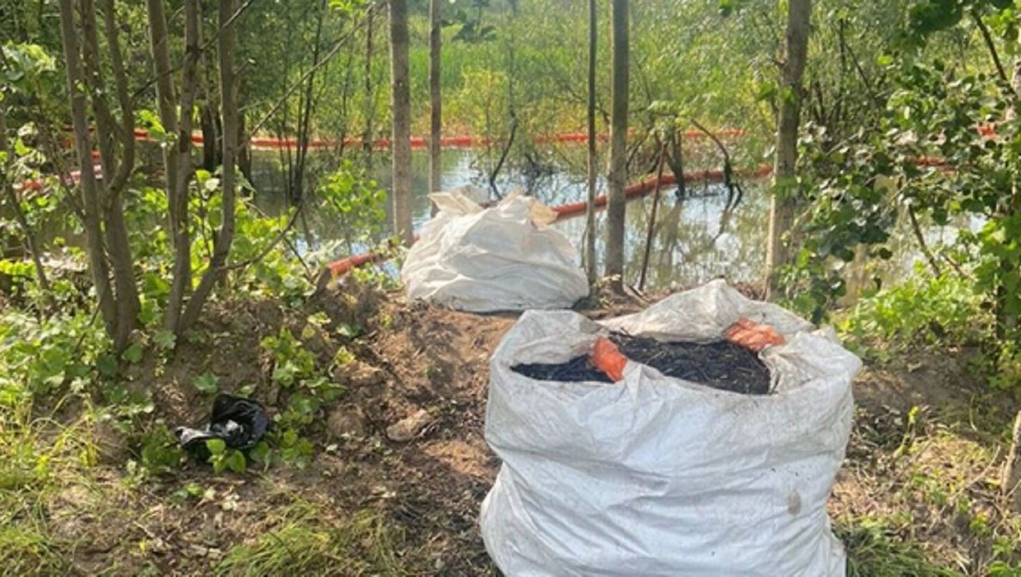 Чтобы предотвратить дальнейшее распространение загрязнения, вдоль реки установлены защитные сорбирующие барьеры, препятствующие распространению остатков нефти.