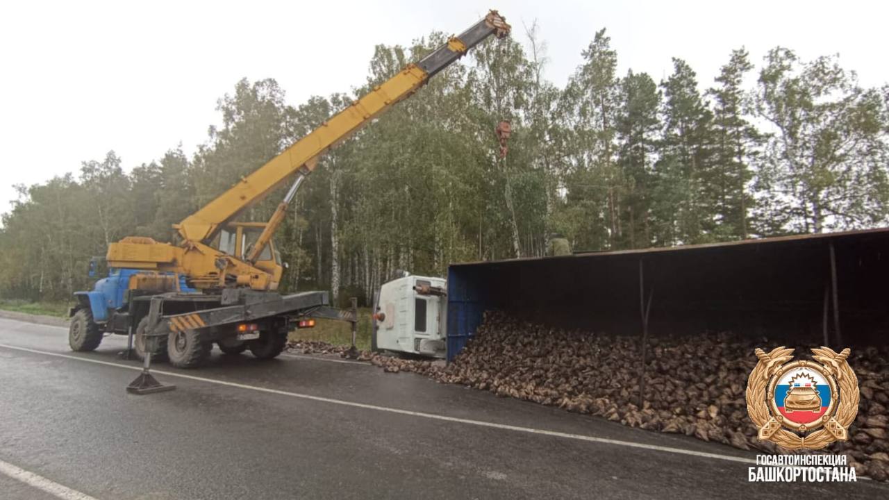 В Альшеевском районе опрокинулся грузовик с сахарной свеклой