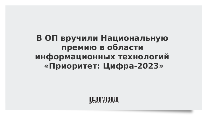 Премия «Приоритет: Цифра» в 2023 году присуждена отечественным компаниям за достижения в области разработки и внедрения российских цифровых решений, а также в области импортозамещения информационных технологий и цифровизации производств. Всего были вручены премии в 14 номинациях, таких как «Программное обеспечение», «Информационная безопасность», «Искусственный интеллект», «Финансовые технологии», «Автоматизация промышленности», говорится на сайте ОП РФ.