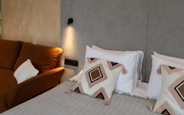 Судя по описанию, домик состоит из двух комнат, укомплектованных кроватью и диваном. Плюсом к этому в нем есть санузел с душевой и туалетом. Всем постояльцам обещают предоставить гигиенические принадлежности, полотенца, халаты, фен и прочее. На вилле работают интернет и телевидение.