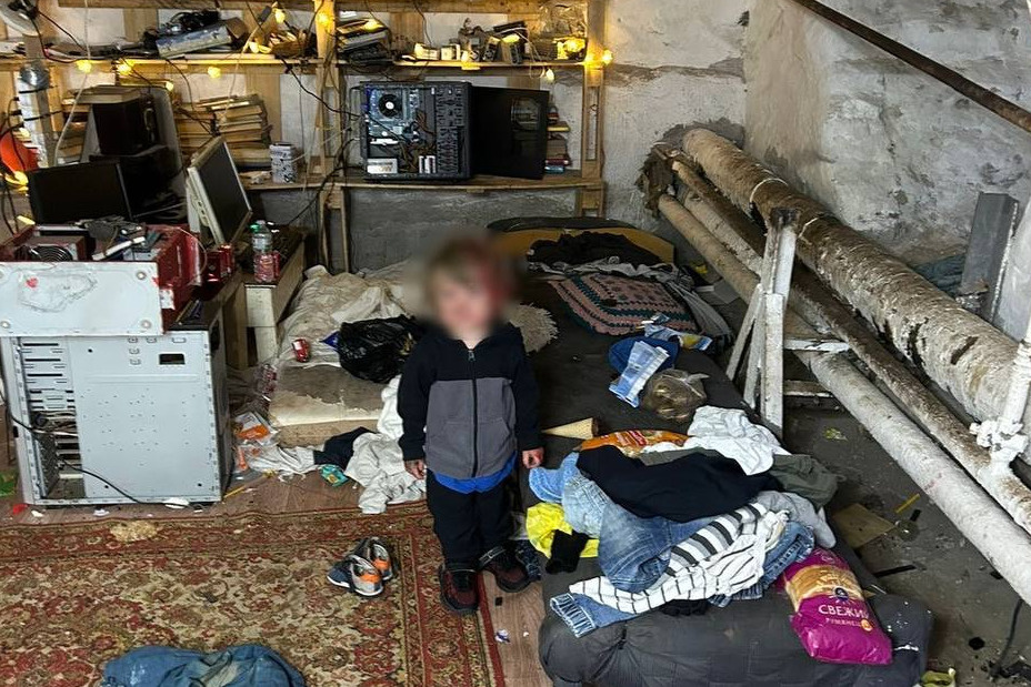 От своего дома он ушёл недалеко. Как выяснилось, ребёнок вместе с братьями и отцом обитает в подвальном помещении в той же девятиэтажке. Обстановка более чем скромная и далёкая от порядка: по потолку — трубы, бетонный пол местами прикрывают линолеум и ковёр, деревянный поддон вместо подноса, каша в мультиварке, запас круп, чая. Из спальных мест — диван и матрас, есть компьютер и книги.