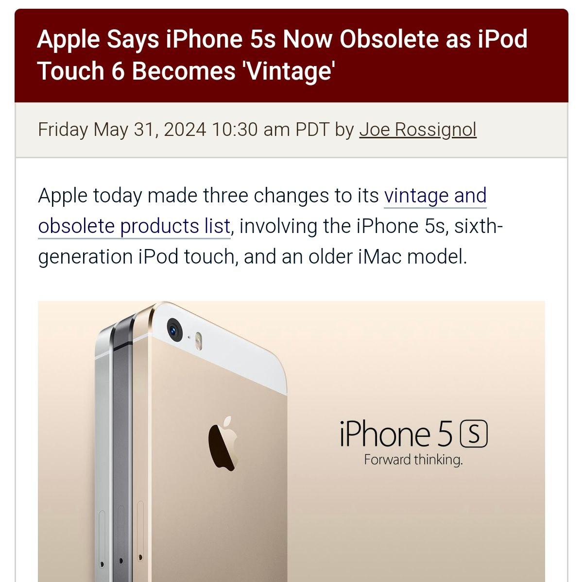 iPhone 5s — всё. Apple внесла смартфон, iPod touch шестого поколения и 21.5-дюймовый iMac 2015 года выпуска в список «устаревших девайсов».
