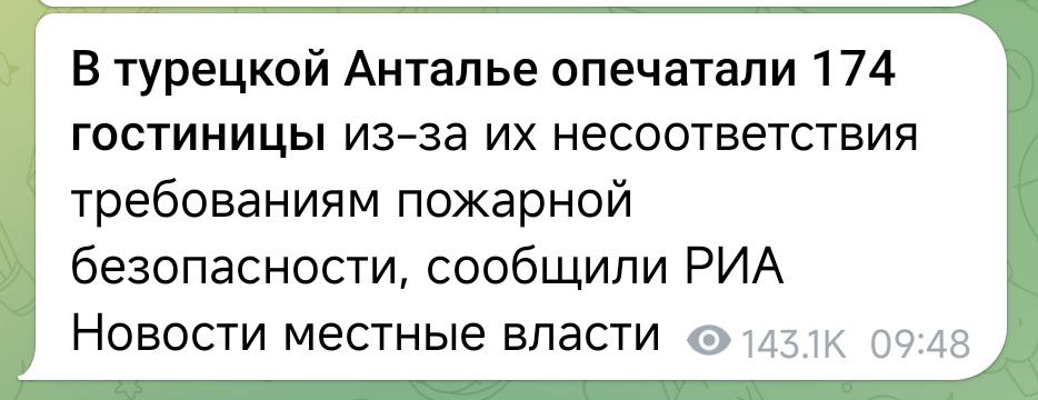 ⚡️🇹🇷 Российские туристы могут не опасаться новостей о "закрытии сотен отелей в Анталье"
