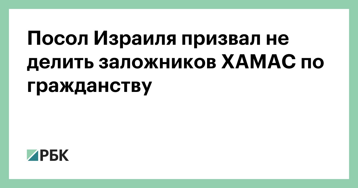 Израиль выступает против селекции заложников ХАМАС по гражданству, необходимо отпустить всех людей, заявил РБК посол Израиля Александр Бен Цви, комментируя сообщения о готовности ХАМАС отпустить восемь человек с российскими паспортами.