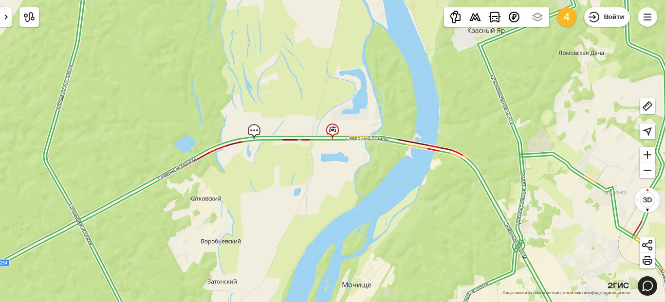 По данным сервиса 2ГИС, движение также затруднено в обе стороны.