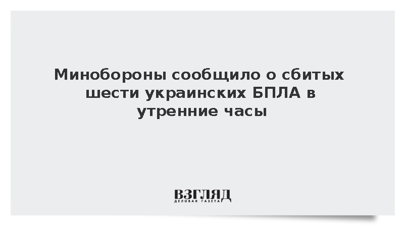 В период с 8.25 до 11.10 по московскому времени средствами противовоздушной обороны были перехвачены и уничтожены шесть украинских беспилотников самолетного типа, передает Telegram-канал Минобороны.