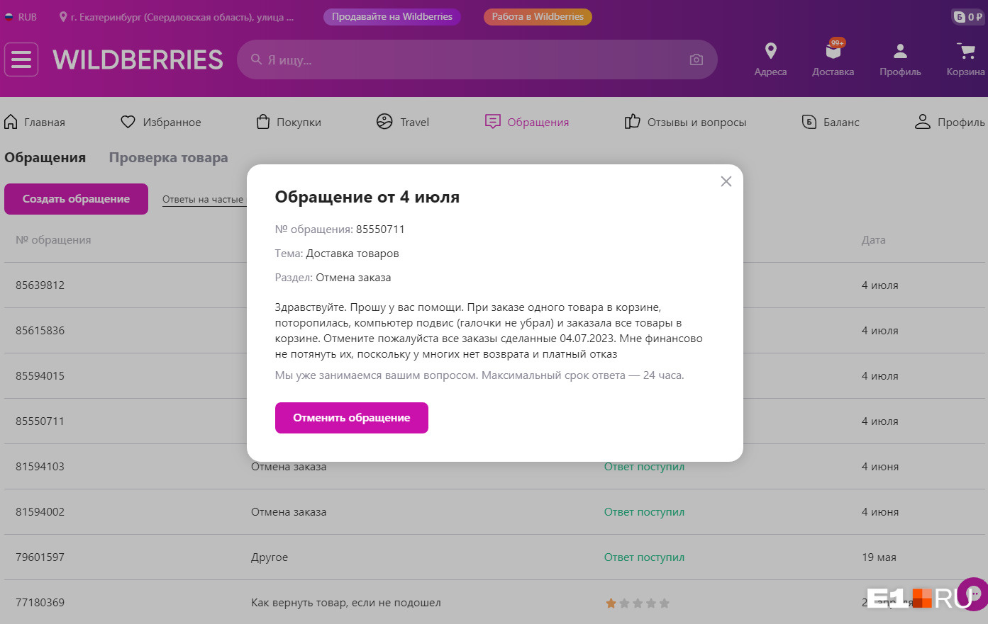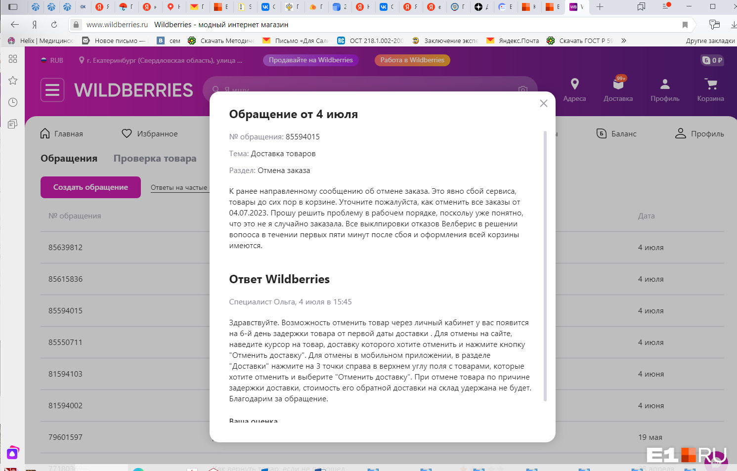 — При заказе одного товара в корзине поторопилась, компьютер подвис, галочки не убрал, и заказала все товары, — пишет Анастасия в одном из обращений в службу поддержки маркетплейса.