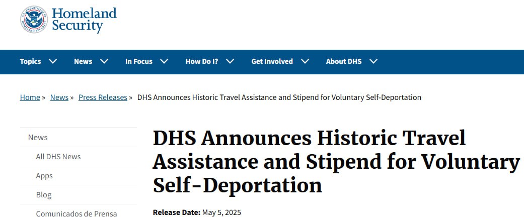 В заявлении министерства подчеркивается, что самостоятельная депортация — самый безопасный, дешевый и разумный путь для тех, кто находится в Штатах незаконно, особенно если человек хочет избежать задержания и депортации в принудительном порядке.