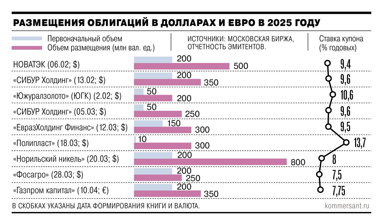 Высокий спрос на редкие облигации позволил почти вдвое повысить объем размещения и заметно снизить ставку. Спрос в основном обеспечили владельцы замещающих облигаций «Газпрома» в евро, погашаемых на следующей неделе.
