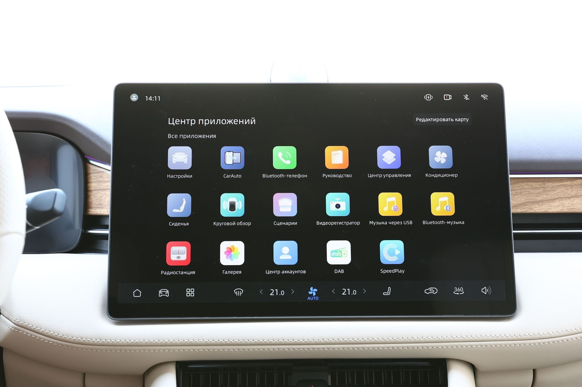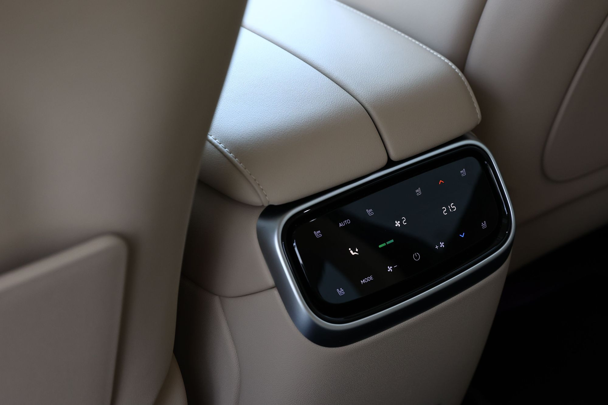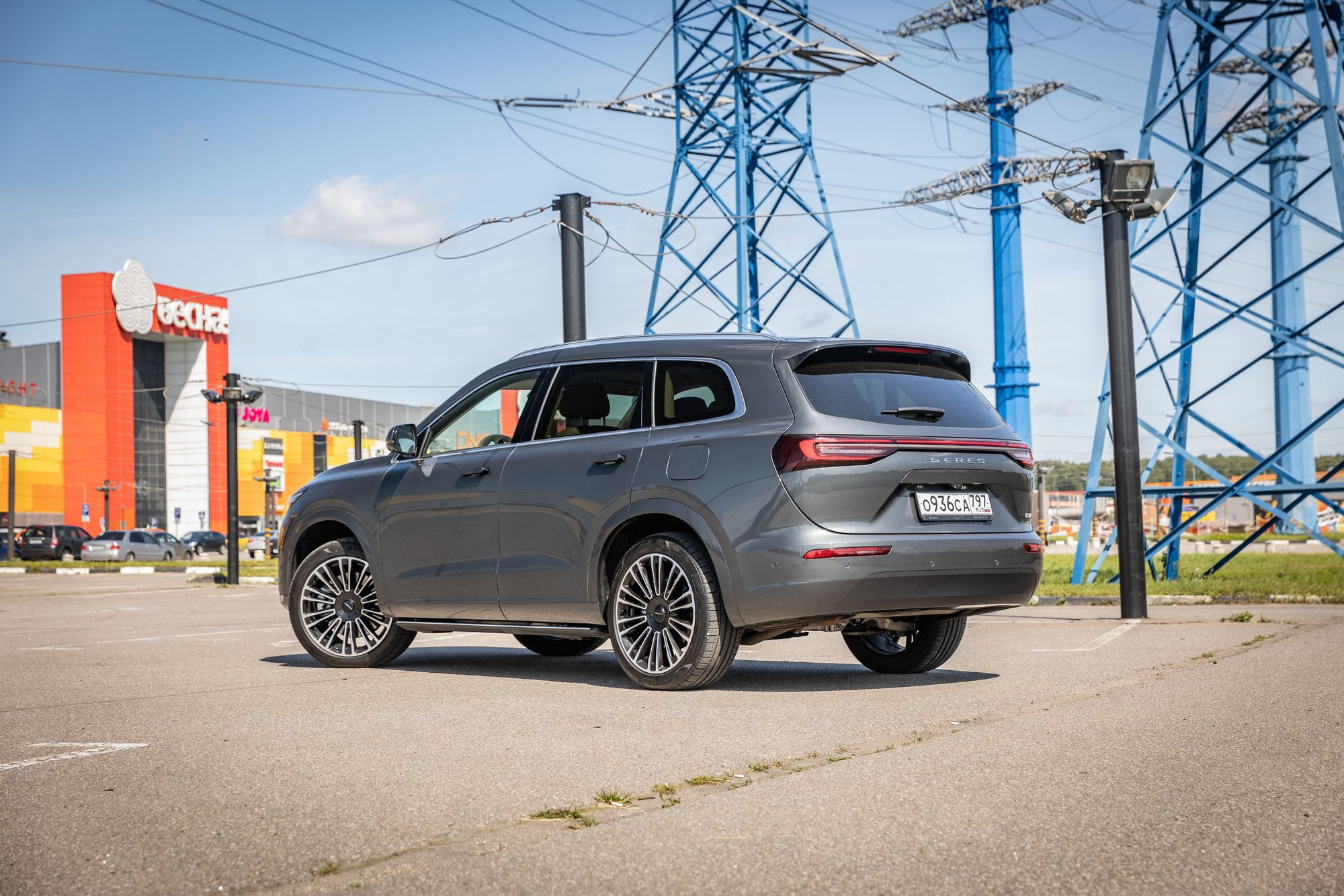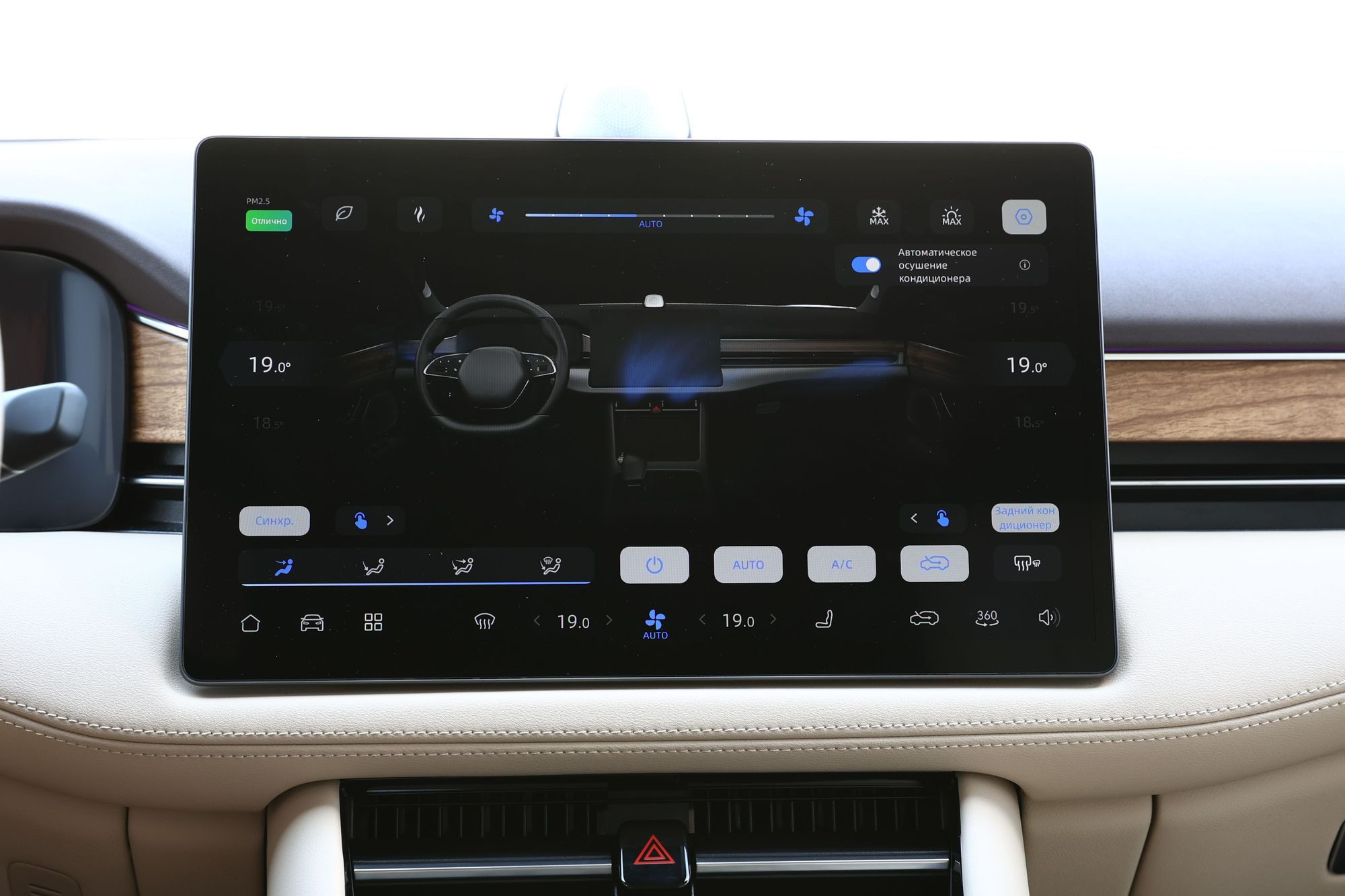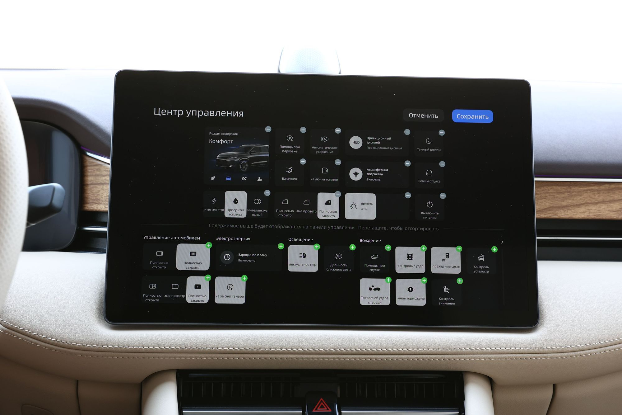 Разумеется, второй ряд у пятиместной версии гораздо просторнее, чем у трёхрядной «семёрки», а сзади могут разместиться трое – простора на уровне плеч более чем достаточно. Здесь есть подогревы крайних мест, вентиляция, массаж, собственная зона климата, разъёмы USB. В общем, всё что нужно. Нет разве что раскладных столиков и дисплеев. Мультимедийная система радует качественным переводом, 15,6-дюймовый центральный экран – шустрым откликом на касания и чёткостью картинки. А вот 10,25-дюймовая приборная панель по-китайски бесполезна, и что-то дельное там можно увидеть только на левой трети экрана.