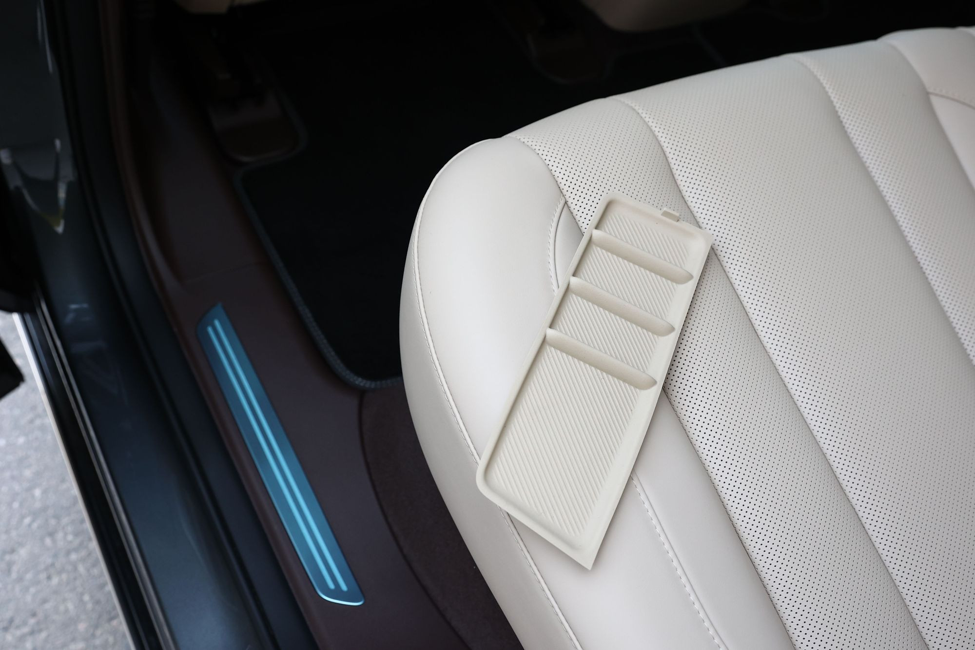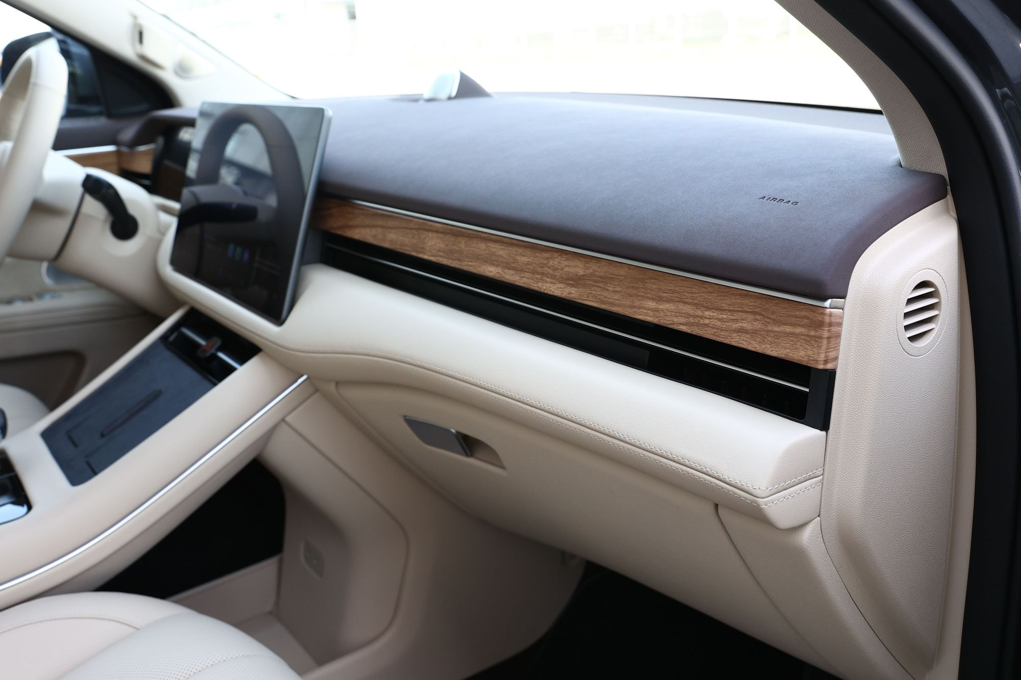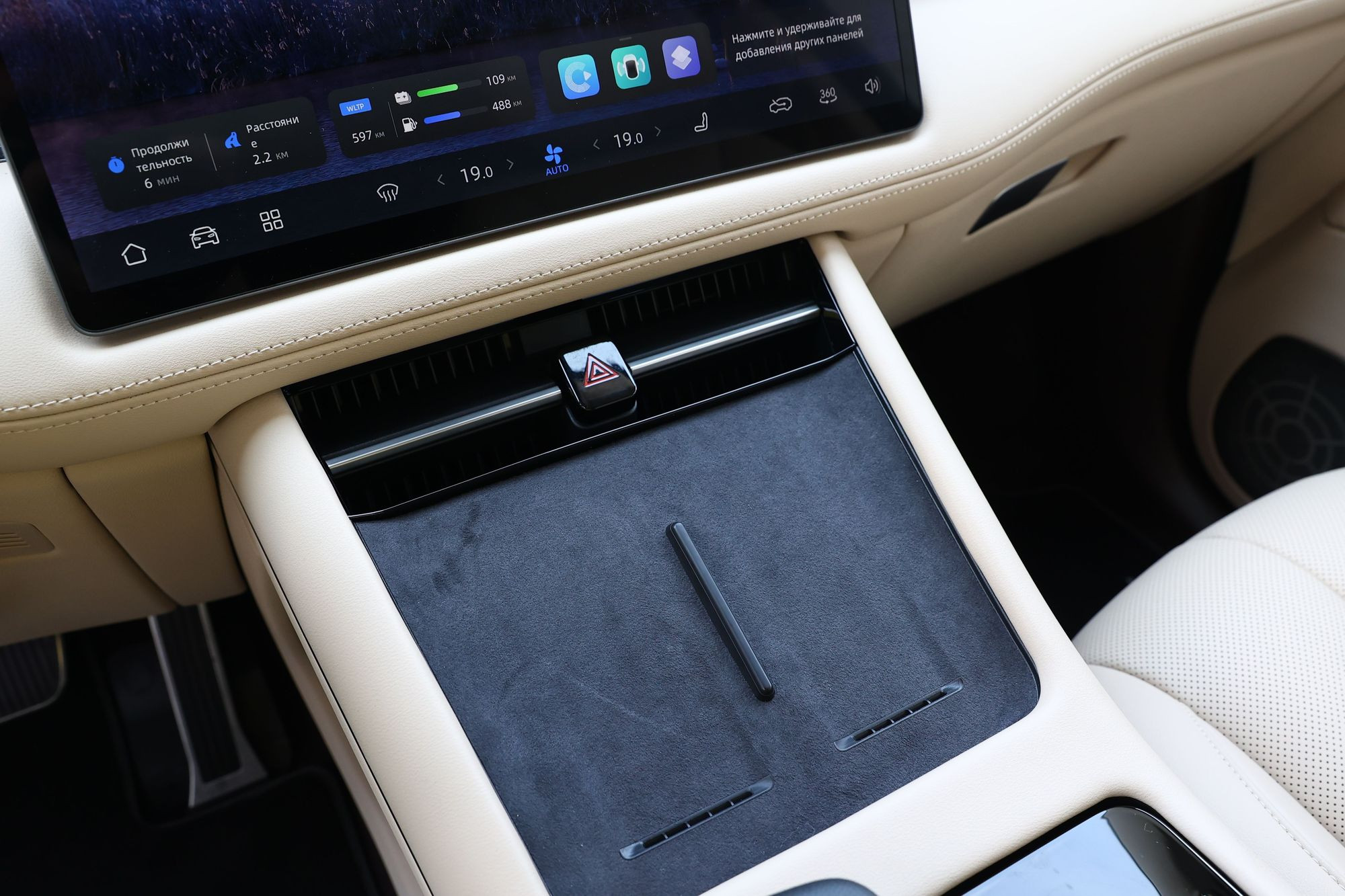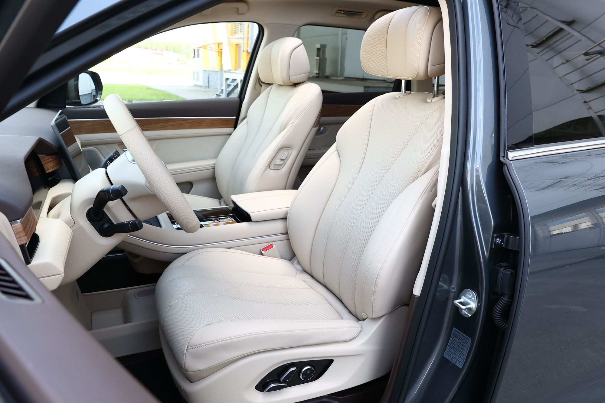 Интерьер, как и в младшем кроссовере М5, радует качеством материалов. Здесь тоже использована отменного качества кожа, мягкий пластик и деревянный шпон с открытыми порами, весьма похожий на настоящий. В отличие от многих других китайских автомобилей, этот радует продуманностью мелочей: во всех карманах есть резиновые коврики, которые можно вытащить и вытряхнуть от мусора. Все отсеки для хранения внутри обиты мягкой тканью, чтобы на ходу ничего не гремело. Ну и все крышки в салоне – с микролифтом.