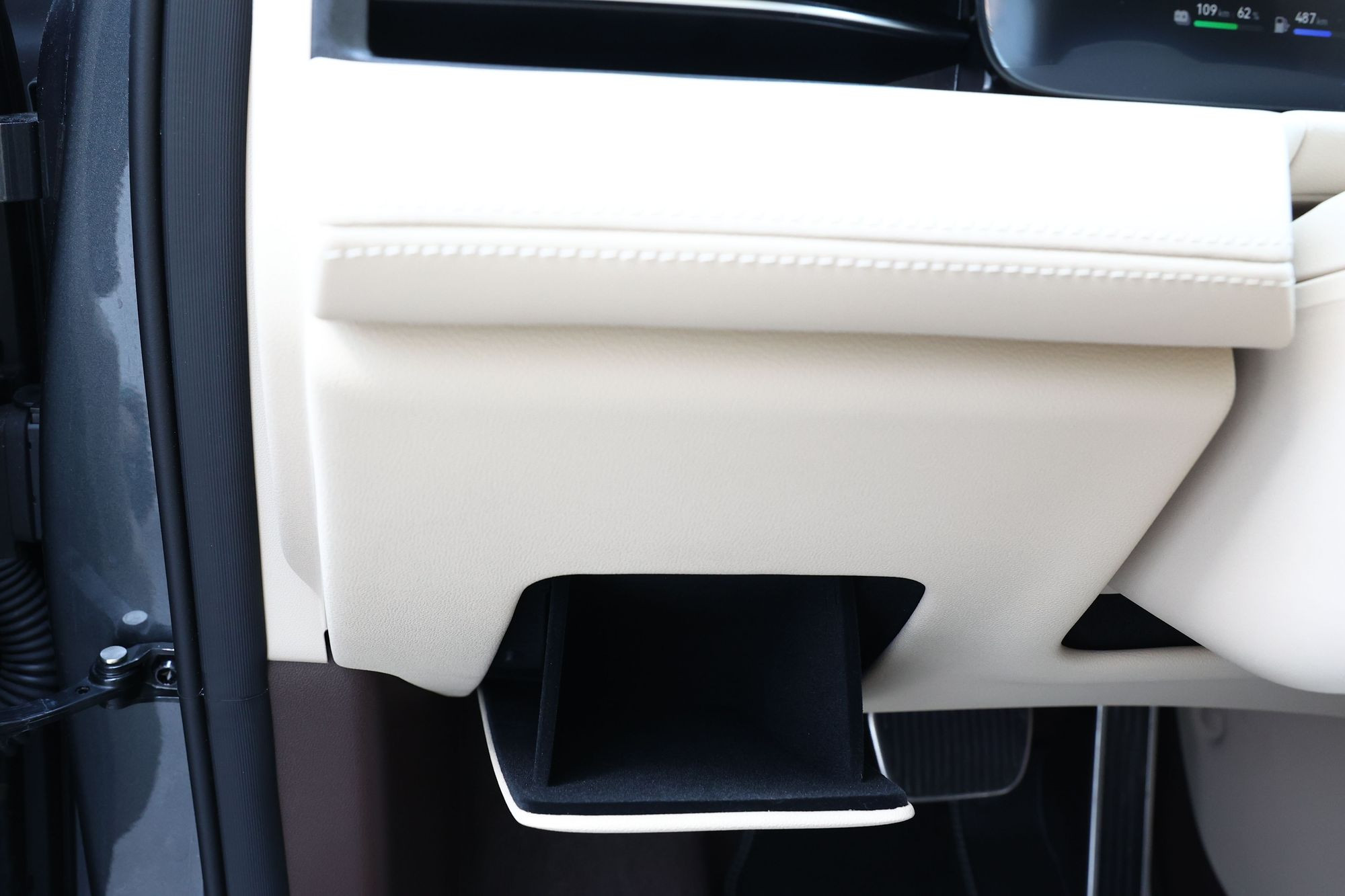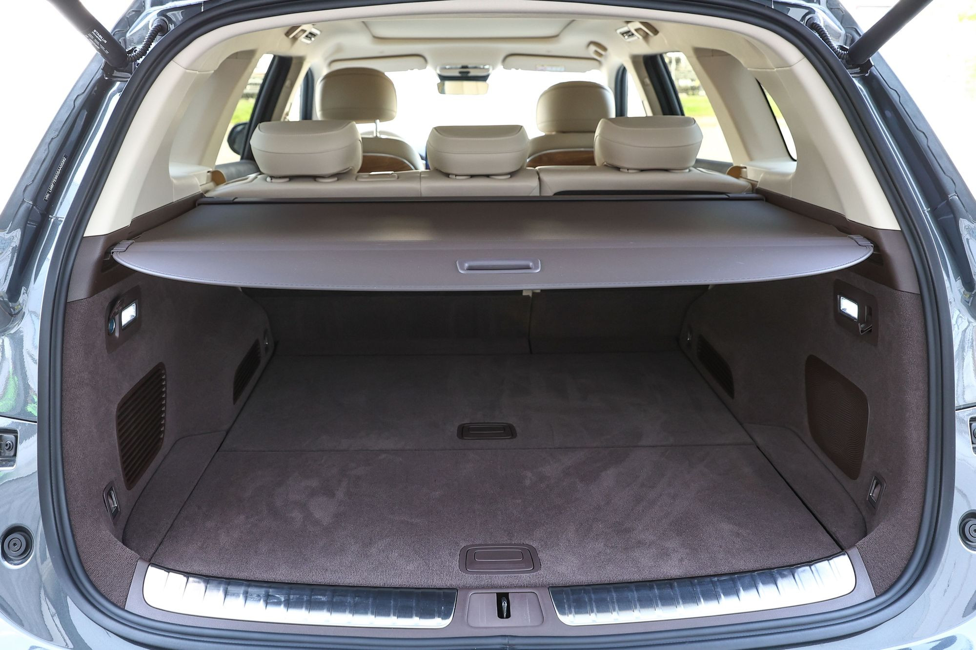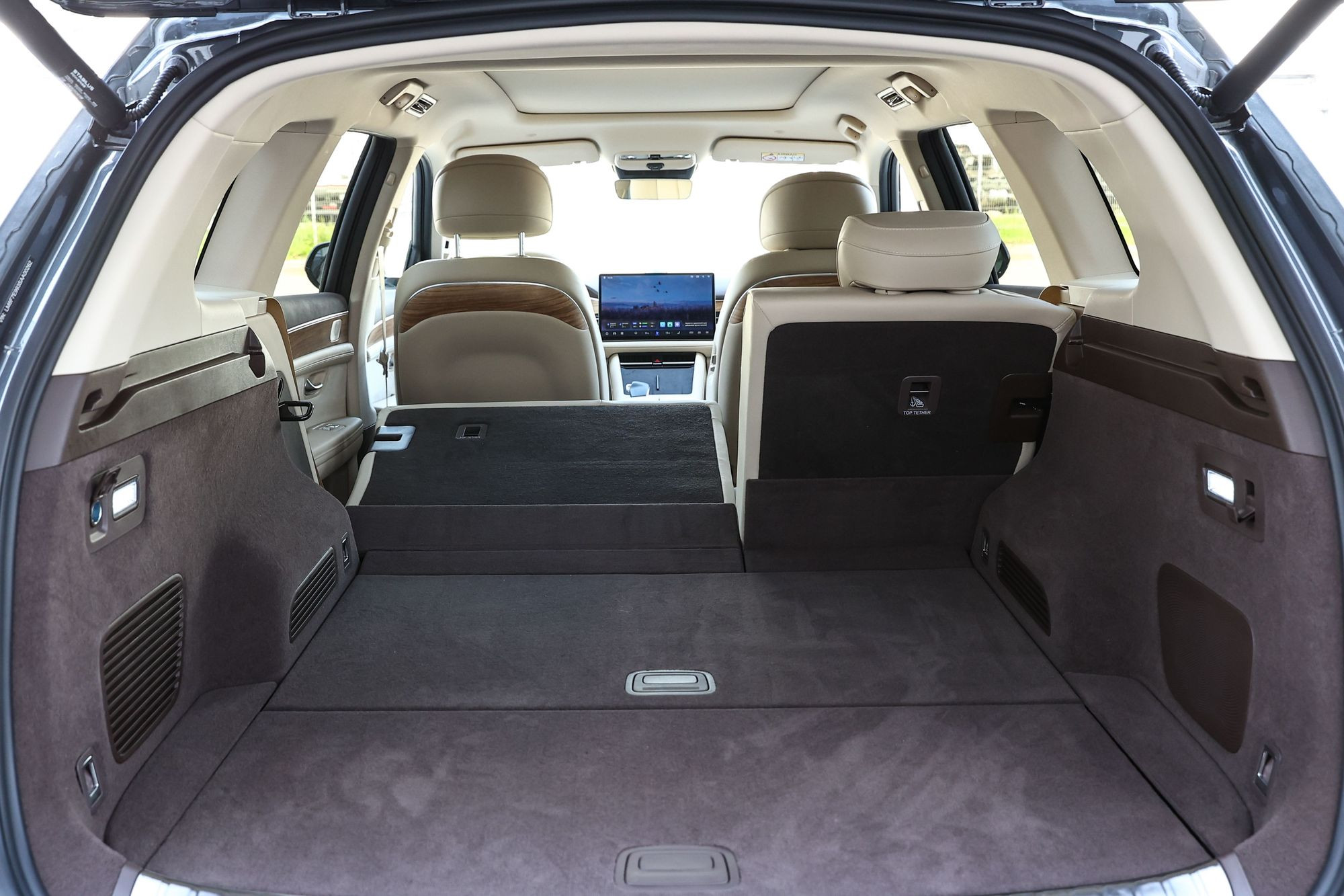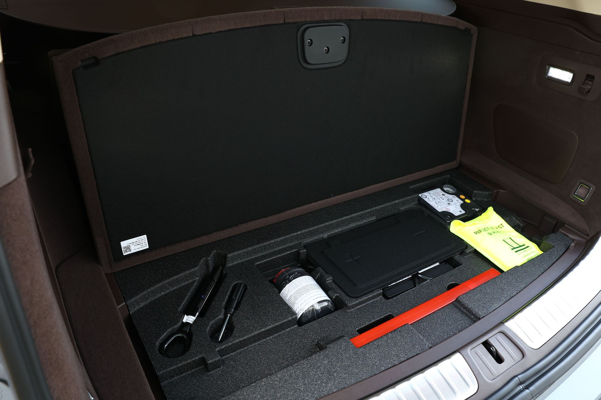 Багажник у пятиместной версии, разумеется, гигантский – 686 литров, а со сложенным вторым рядом – все 1619 литров. В подполье есть не один, а два полноценных отсека. Один – с зарядным устройством и «набором автомобилиста», второй – с проушиной, домкратом и прочими штатными инструментами. Наверное, единственная претензия здесь – внезапно малый угол подъёма багажной двери. С ростом 180 см мне приходилось быть осторожным: её кромка находится аккурат напротив лба, и это опасно.