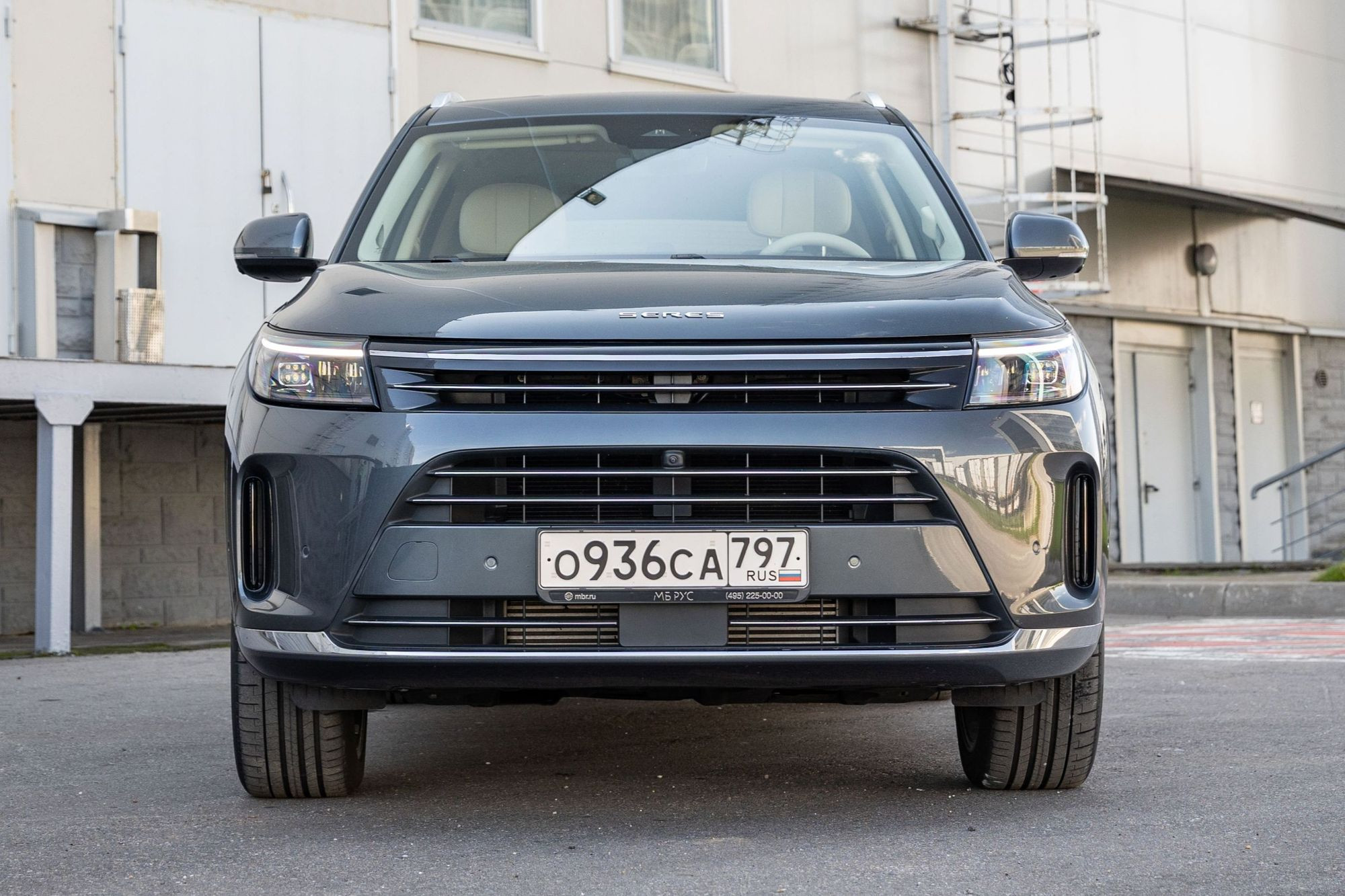 Правда, этот напор заметно стихает, когда в батарее остаётся около трети заряда. Один на один со 116 силами «турбополторашки» ты, конечно, не останешься, но электроника явно переводит силовую установку в щадящий режим и старательно бережёт остатки киловатт-часов. Управляется кроссовер почти по-немецки точно и безупречно стоит на скоростной дуге, а небольшой акцент на заднюю ось добавляет азарта. Крены довольно умеренные для такой массы и высокого центра тяжести. На вращение руля М7 реагирует живее, чем ожидаешь, но внятной обратной связи, увы, нет – только фоновое усилие.