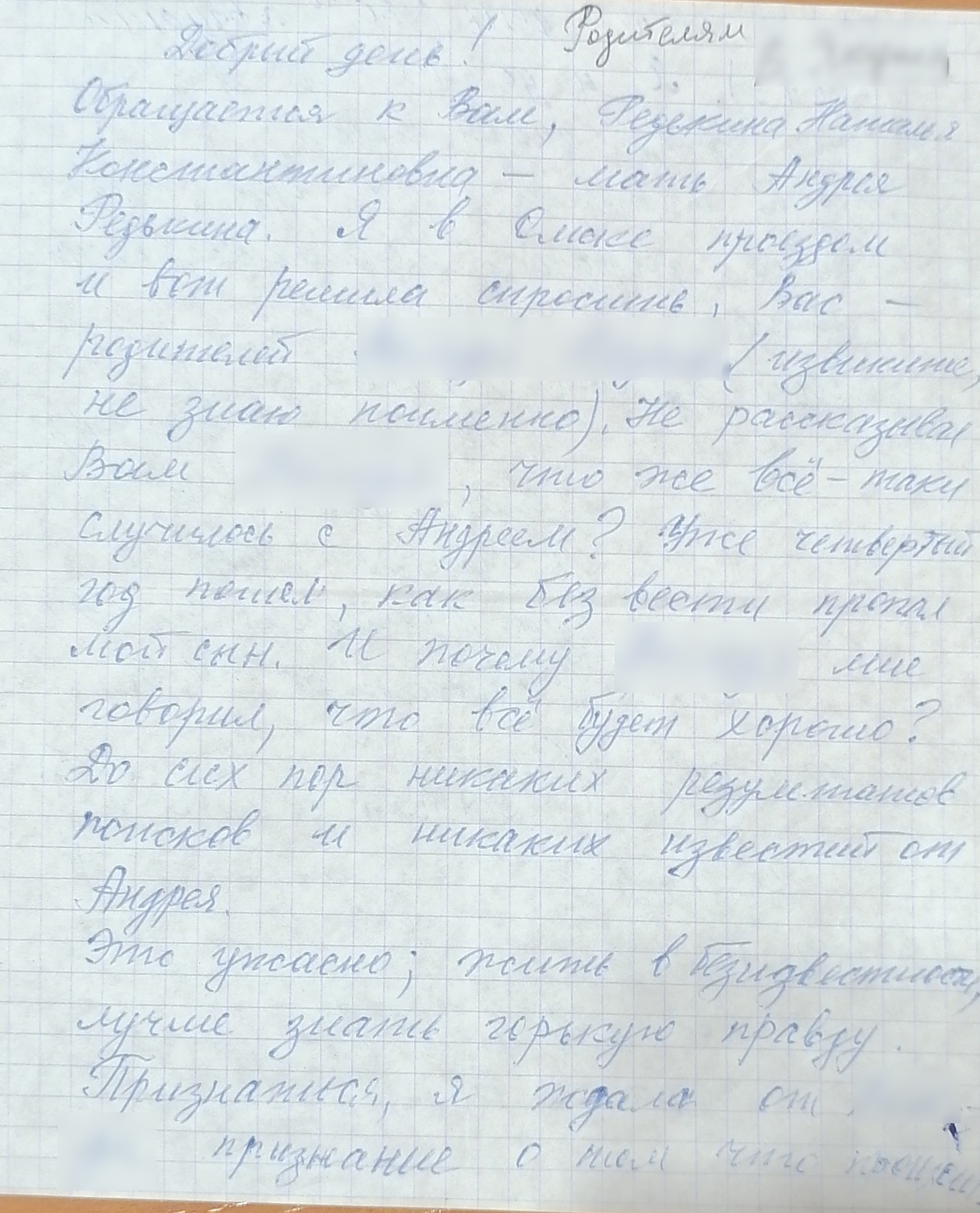 Последняя попытка Натальи Константиновны случилась в 2005 году. Она написала от руки письмо родителям Влада, в котором попросила честно рассказать, что могло случиться с Андреем, но ответа не получила. В семье считают, что именно Влад был последней ниточкой, ведущей к загадке пропажи Антона.