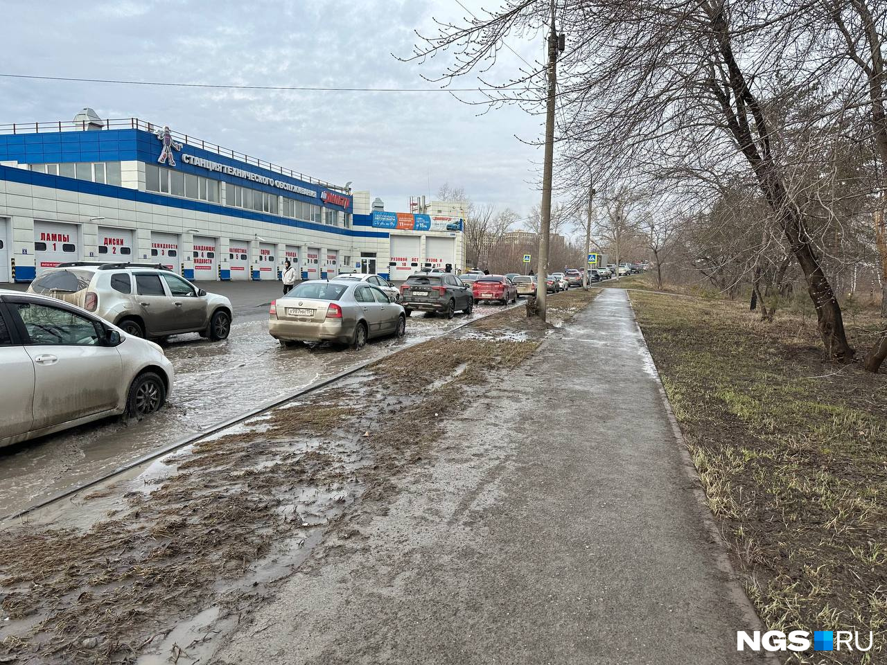 Сибирячка Евгения рассказывает: на левом берегу собралось множество автомобилей — она прислала в редакцию НГС фото, судя по которому они выстроились в длинный ряд.