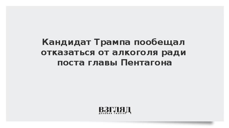 Американский телеведущий и бывший военный Пит Хегсет, кандидат Дональда Трампа на пост главы Пентагона, пообещал отказаться от алкоголя, чтобы заручиться поддержкой сенаторов.