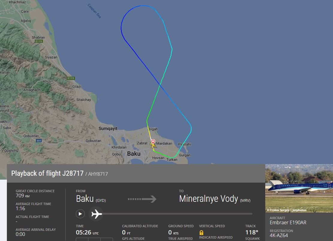 Самолёт авиакомпании AZAL, следовавший рейсом из Баку в Минводы, вернулся в аэропорт вылета из-за закрытия воздушного пространства над Махачкалой, сообщили в авиакомпании.
