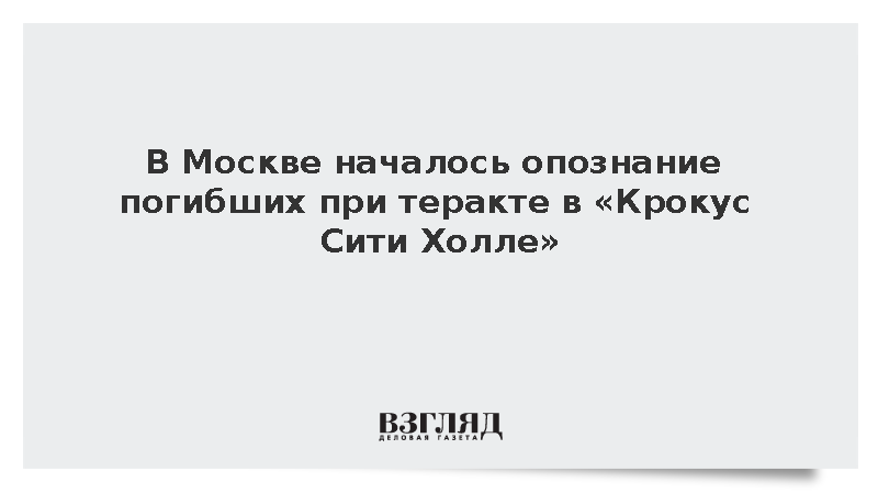 В Москве начались процедуры опознания погибших в результате теракта в концертном зале «Крокус Сити Холле», который произошел 22 марта, сообщает департамент здравоохранения Москвы.