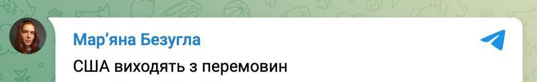 США выходят из переговоров, утверждает депутат Верховной рады Безуглая.