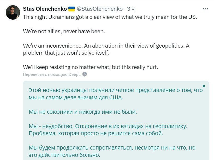 Минувшая ночь и для украинцев не прошла даром. Судя по этому посту (а он далеко такой не один был) для многих она стала настоящим откровением.