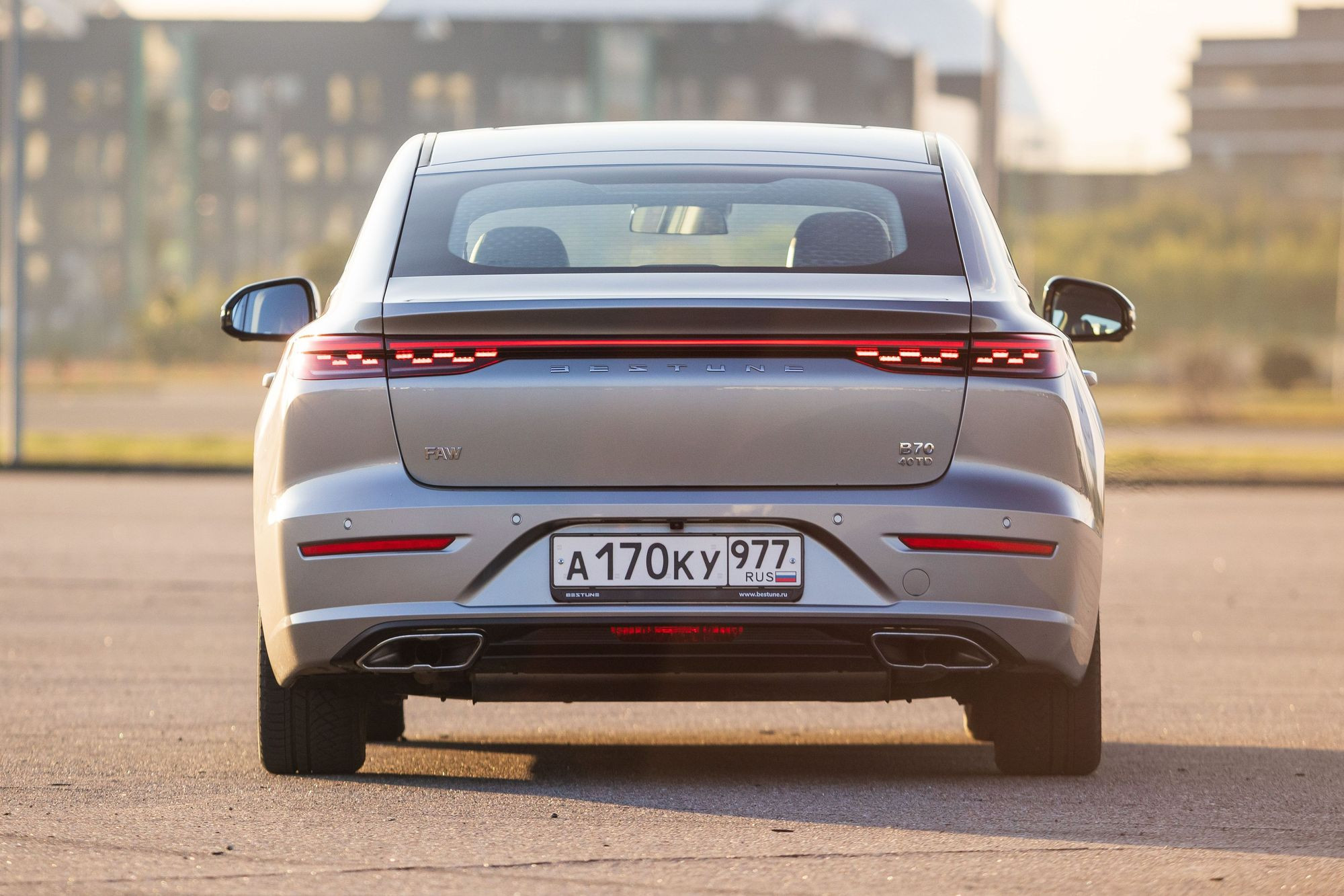 В естественной среде обитания, то есть на обычных городских дорогах, а не в лучах софитов, Bestune B70 смотрится очень даже неплохо – особенно в фирменном светло-сером цвете Grayish White. Жаль, что на тесте не было чёрных автомобилей – красный Quantum Red выглядит слишком вызывающе и откровенно не идёт элегантному лифтбеку. Рестайлинг однозначно прибавил модели привлекательности – машину с интересом разглядывают на светофорах. Особенно таксисты.