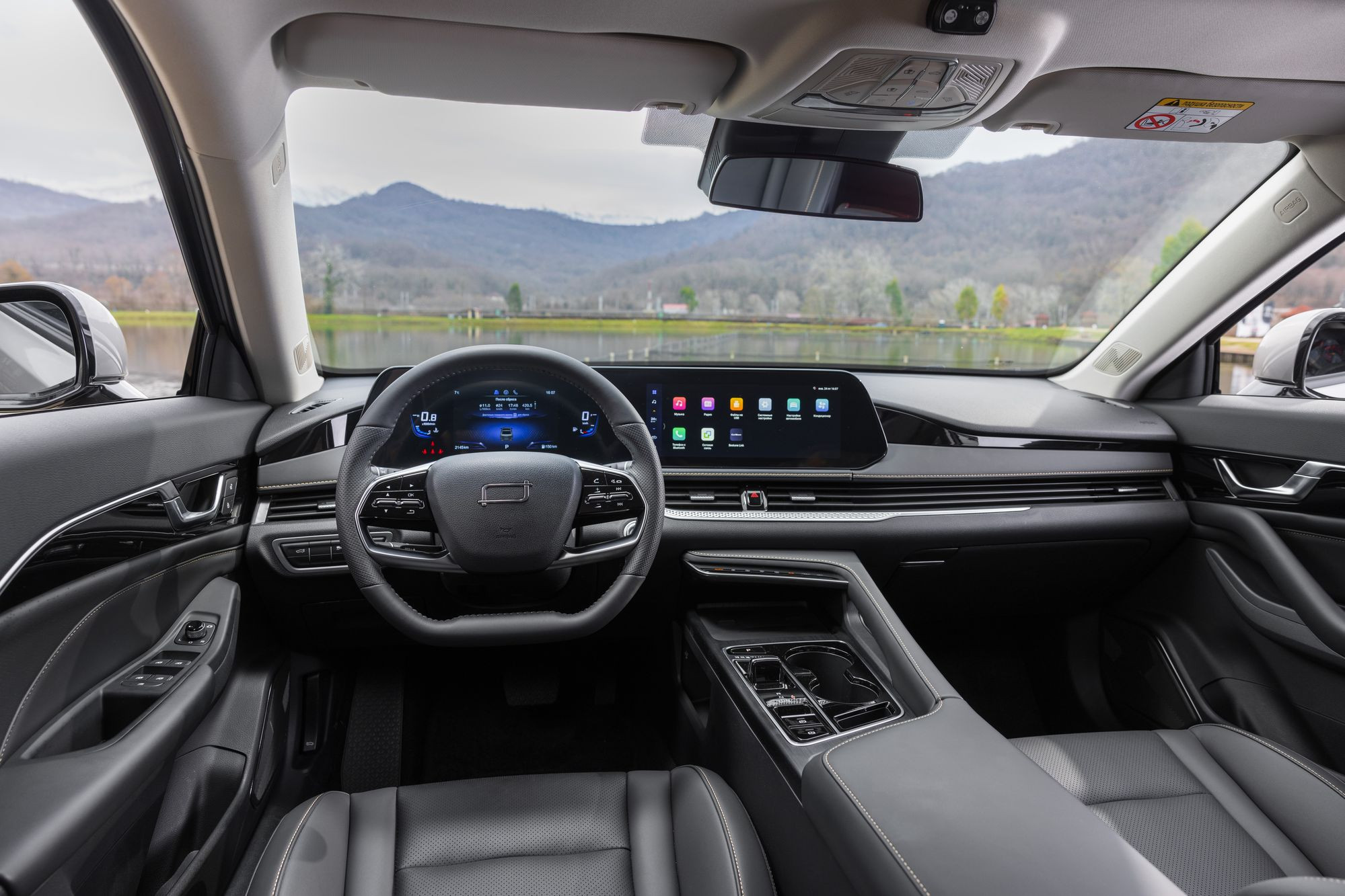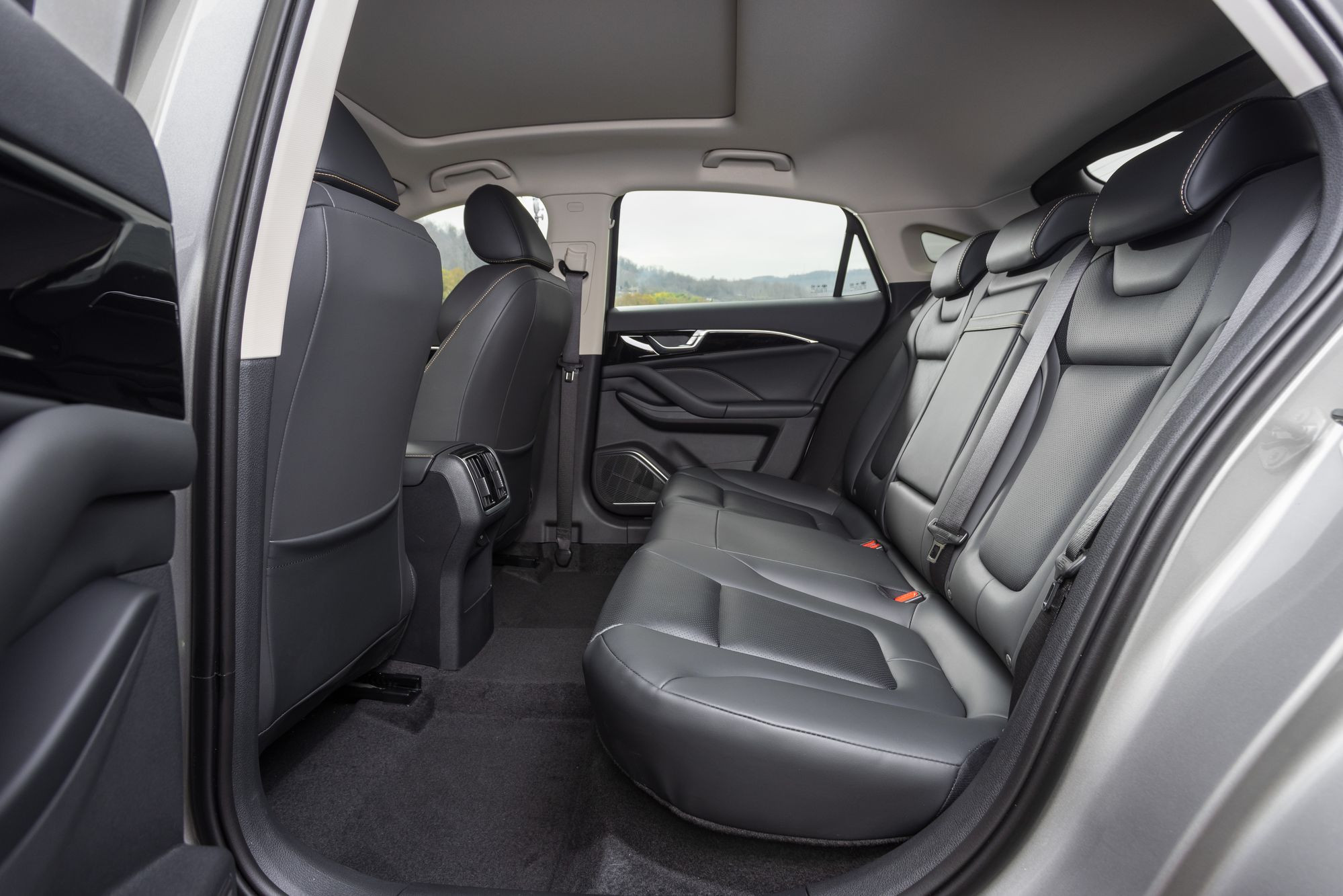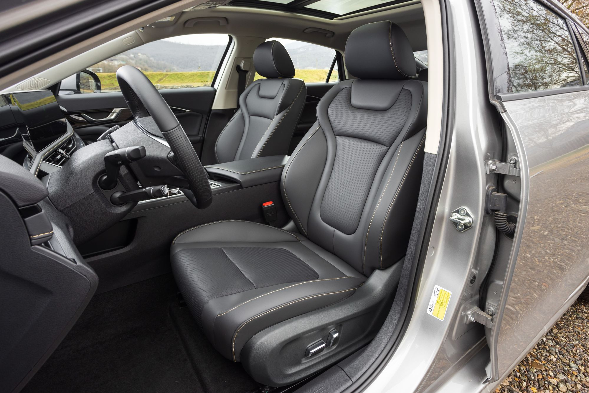 Передние кресла вполне удобны – даже подушка не кажется традиционно коротковатой. Хочется разве что добавить ей угла наклона. Диапазоны регулировок сидений разумны. На втором ряду есть нюансы: запас пространства для ног с учётом 2,8-метровой колёсной базы (для сравнения, у Camry она 2825 мм, у Kia K5 – 2850) можно только похвалить, но крыша уже давит на голову. При росте 180 см над головой остаётся буквально два пальца до потолка. Причина понятна – это расплата за изящный силуэт лифтбека. Отсюда и низкие спинки заднего дивана, подголовники которого упираются в плечи.