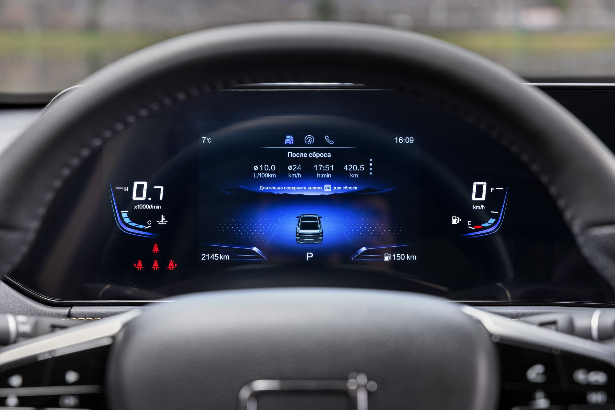 Приборная панель диагональю семь дюймов не предлагает никаких вариантов дизайна, кроме базового. В нём можно листать только вкладки с данными бортового компьютера, источником звука и телефоном в середине дисплея – с остальным придётся мириться. Привыкнуть к значениям скорости где-то в правом углу сложно. Тем более когда столько места на экране просто пустует. А вот 12,3-дюймовый сенсорный дисплей похвально отзывчив. И с яркостью, и с разрешением у него тоже всё в порядке.