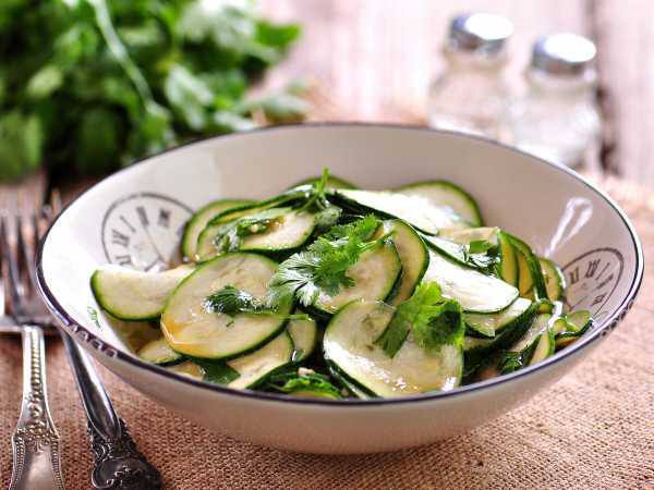 2. Выложите кабачки вместе с зеленью и чесноком в банку или миску.