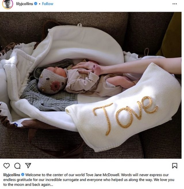 Лили и ее муж Чарли стали родителями девочки. «Добро пожаловать в центр нашего мира, Тув Джейн Макдауэлл. Словами никогда не будет выражена бесконечная благодарность нашей невероятной сурмаме и всем, кто помогал нам на этом пути. Мы любим тебя до луны и обратно», — подписала Коллинз снимок с малышкой.