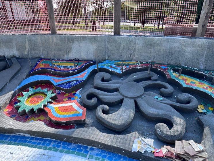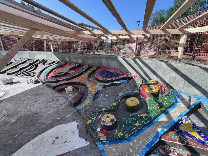 Весной прошлого года в Черниковке демонтировали данный мозаичный фонтан в стиле советского модернизма, построенный еще в 1975 году. Обследование показало, что бетонная чаша фонтана подверглась коррозии и находится в аварийном состоянии, а часть мозаичного рисунка утрачена. Власти заявили, что оригинальную плитку, которую ранее обещали сохранить, реставрировать не будут – вместо этого узор восстановят с помощью современных технологий. Мозаика была выложена из яшмы и слюды и изображала растительный орнамент и морской мир. Фонтан не работал с начала 2000-х годов, а планы по его реконструкции обсуждались с 2020 года.