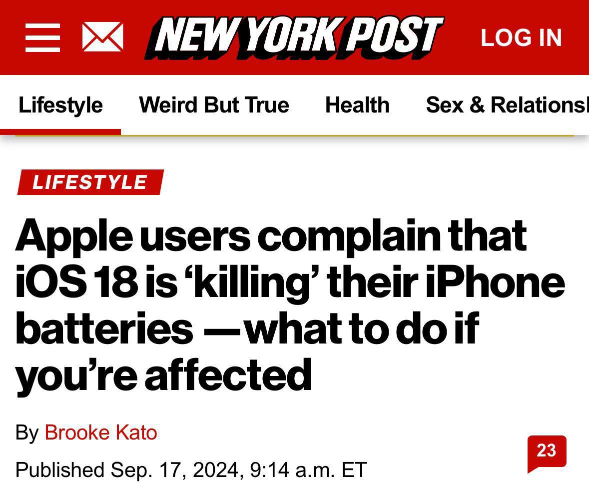Бегло прочитав этот заголовок в New York Post, я подумал, что iOS 18 начала убивать людей - владельцев Айфонов.