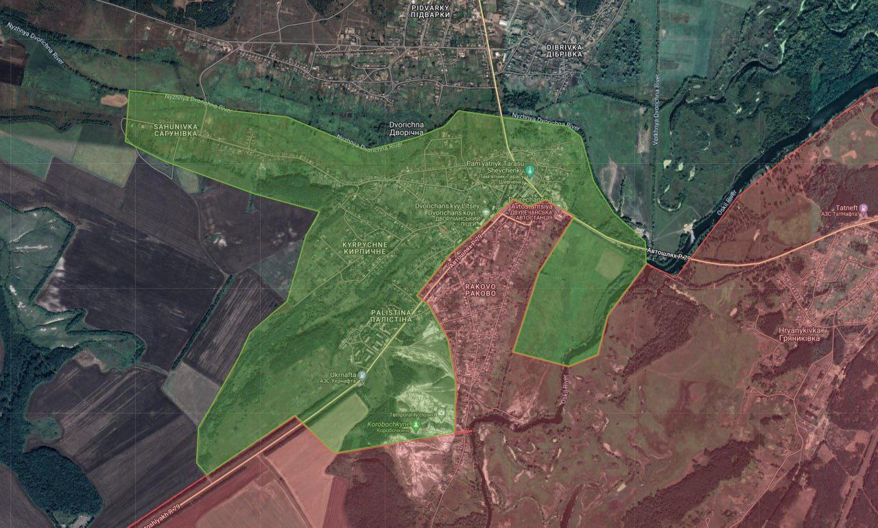 ❗️Международные ТГ-каналы сообщают о выдавливании ВСУ за реку Нижняя Двуречная в районе реки Оскол в Харьковской области и переходе под контроль Армии России большей части посёлка Двуречное - кварталов Раково, Палестина, Кирпичное и Сагуновка.