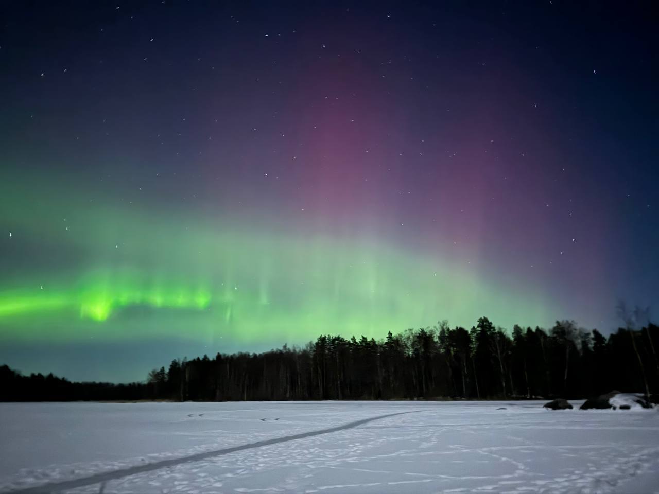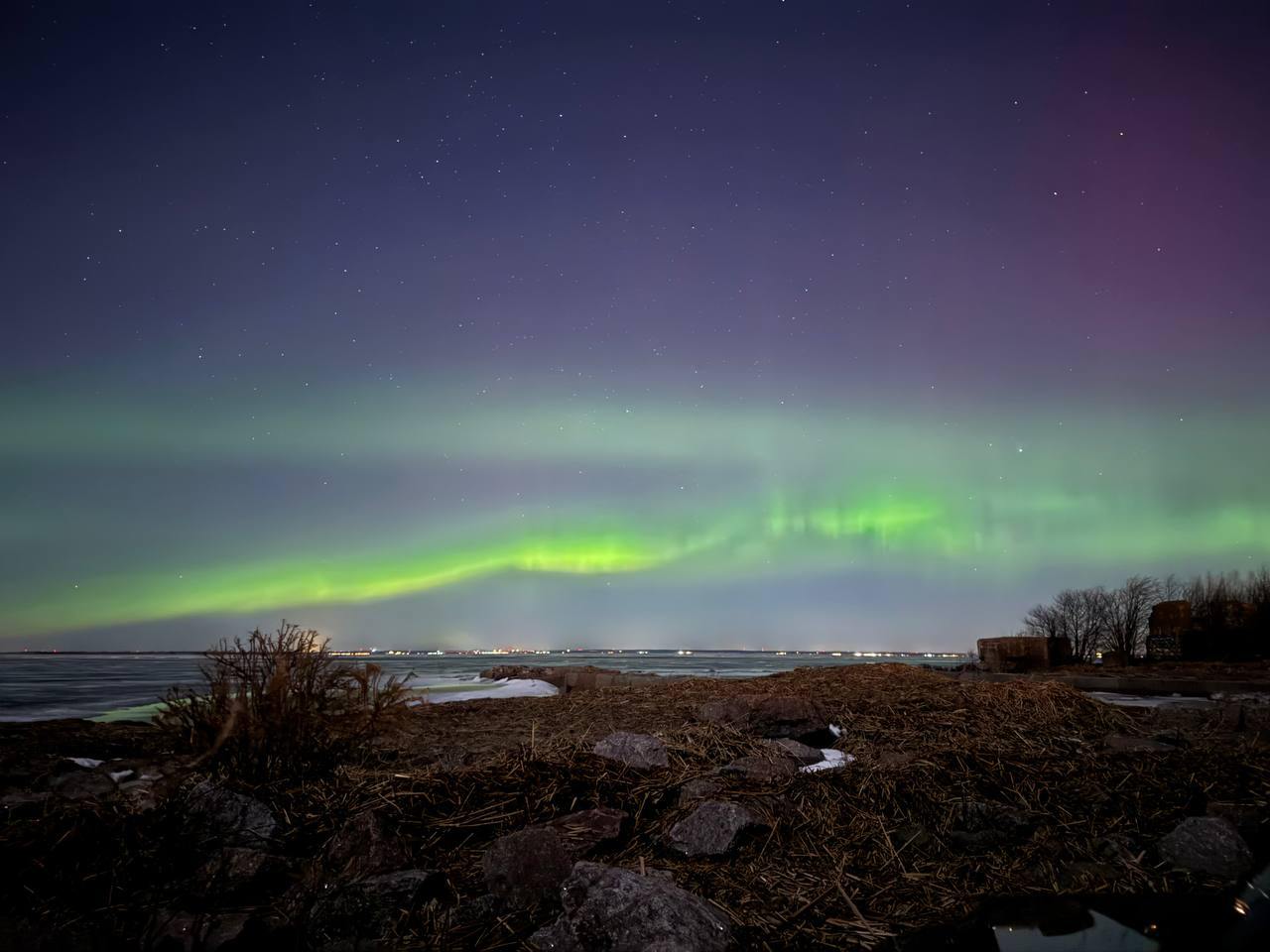 В Международный женский день природа преподнесла жителям и гостям Петербурга удивительный подарок: город озарило красочное северное сияние.