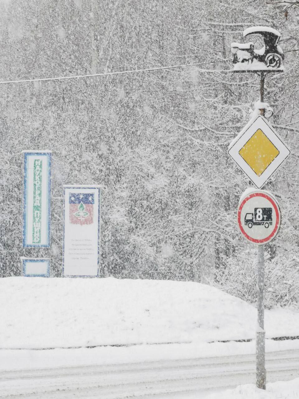 ❄️ Снег пришёл на юг Московской области, в частности в Серпухов и Пущино.