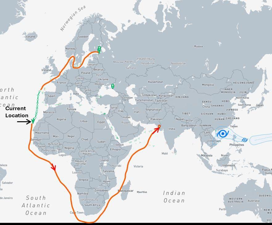 Российская нефть марки Urals взяла курс на Индию нестандартным маршрутом, огибая Африканский континент. Обычно поставки осуществляются через Суэцкий канал – более коротким и быстрым путём.