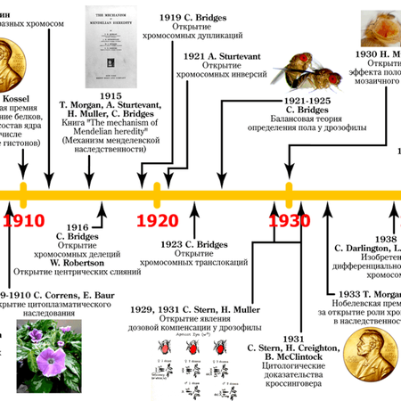 Статья на конкурс «био/мол/текст»: В 2015 году исполняется 100 лет хромосомной теории наследственности. Ее основные положения были сформулированы Т. Морганом, А. Стёртевантом, Г. Мёллером и К. Бриджесом в книге «Механизм менделевской наследственности», вышедшей в Нью-Йорке в 1915 году. А позднее Томас Морган получил первую «генетическую» Нобелевскую премию — за открытие роли хромосом в наследственности. Юбилею хромосомной теории была посвящена международная конференция «Хромосома 2015», прошедшая в августе 2015 года в Новосибирском Академгородке. Нижеизложенный текст — это авторские комментарии к постеру об истории исследований хромосом, представленному на конференции, а теперь и на «Биомолекуле» — в самой «живой» конкурсной номинации «Наглядно о ненаглядном».