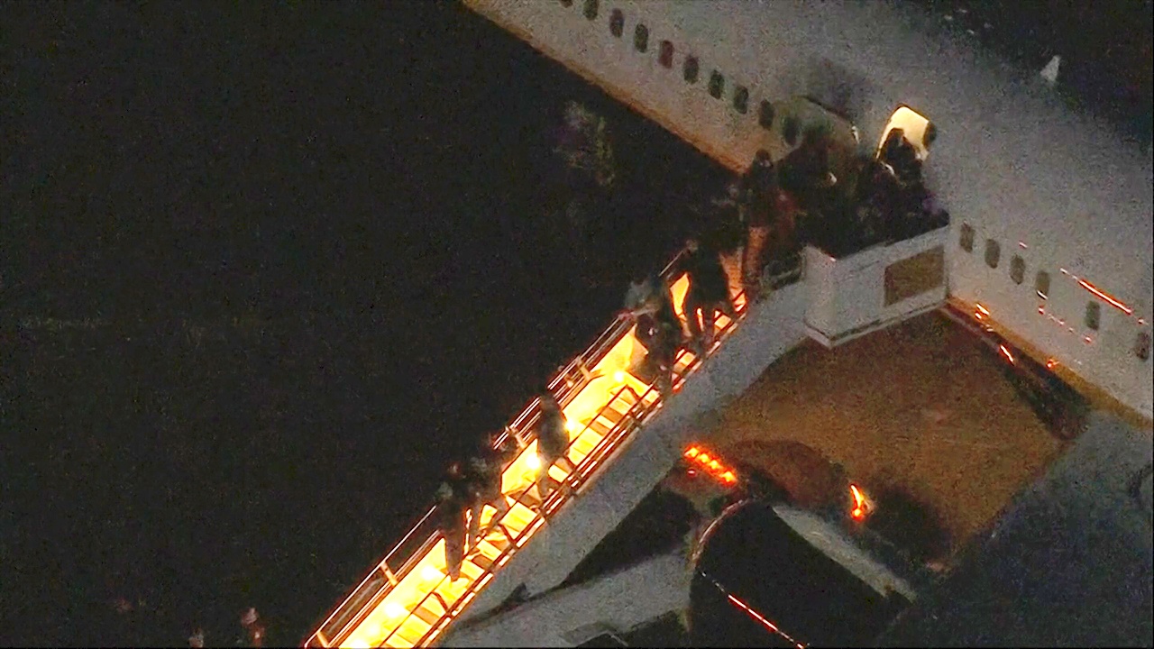 Захваченного в Венесуэле Николаса Мадуро вывели из приземлившегося в Нью-Йорке самолета. Его вывели в сопровождении американских сотрудников спецслужб.
