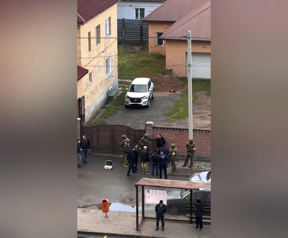 На месте работали вооружённые сотрудники в форме, а также люди в гражданской одежде.