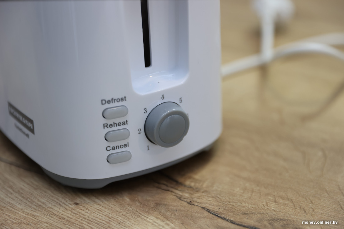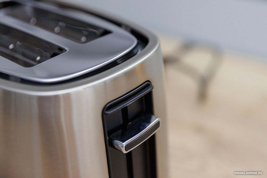 Мощность — 1000 ватт, цена на момент выхода текста — от 142 рублей. Добротный, в хорошем смысле тяжеловатый. В отзывах написано, что хорошо обжаривает уже на второй-третьей программе (степени обжаривания) из семи: «Реально используется на 30—50% мощности, больше не надо», «Жарит уже после третьего деления. На втором золотистая корочка». Из минусов, описанных нашими покупателями, — резковатый выброс хлеба. Забежим вперед: мы не заметили, чтобы Gorenje как-то отличался резкостью выброса хлеба на фоне других тостеров.