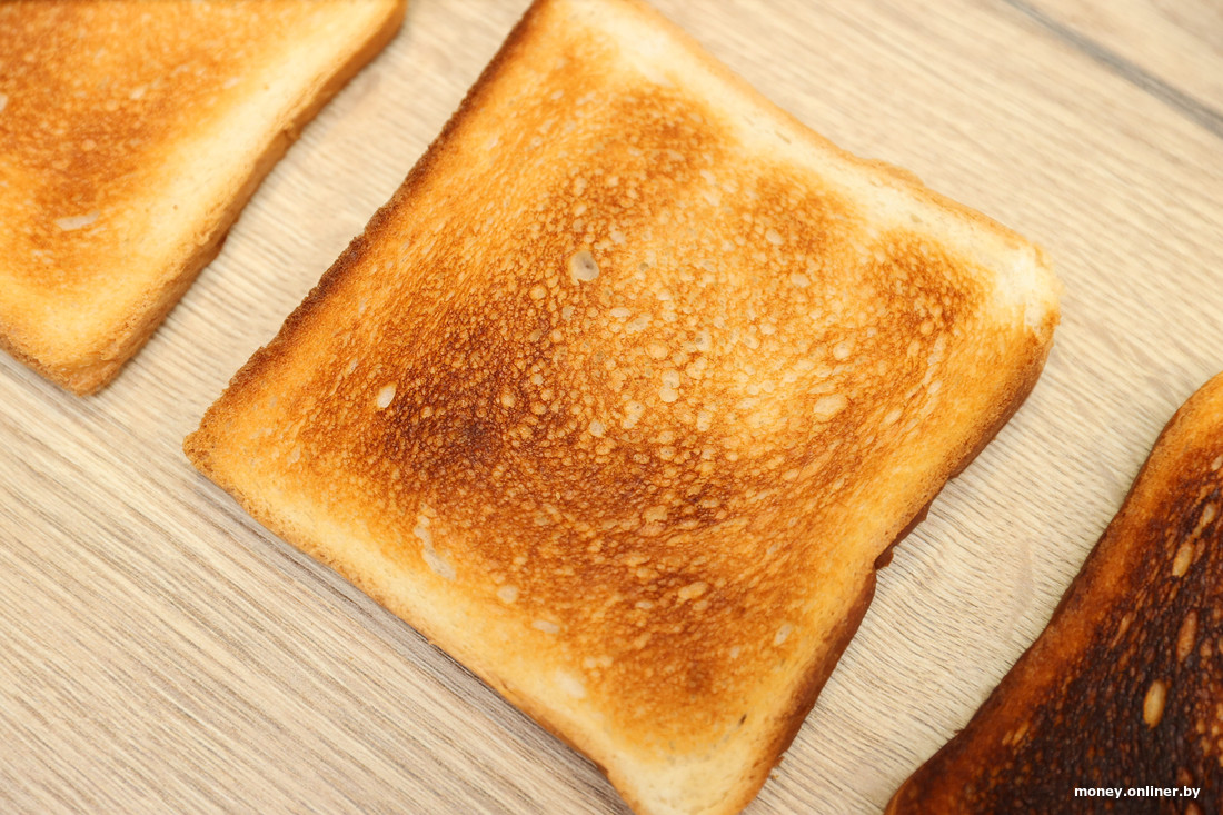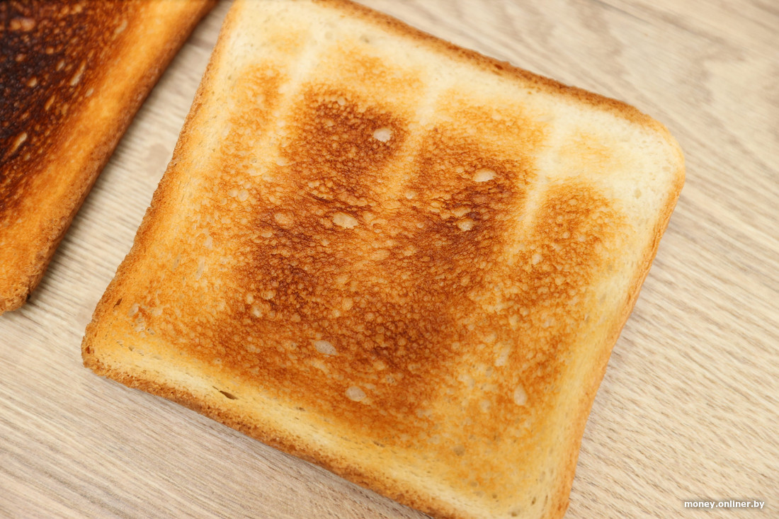 Хлеб обжарился максимально равномерно, прожарились даже края (напомним, бюджетный тостер с этой задачей не справился).