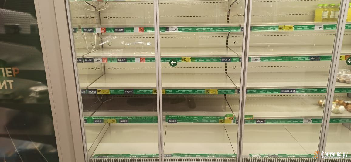 В отдельных точках читатели «Фонтанки» также отмечали отсутствие на полках сливочного масла и гречи.