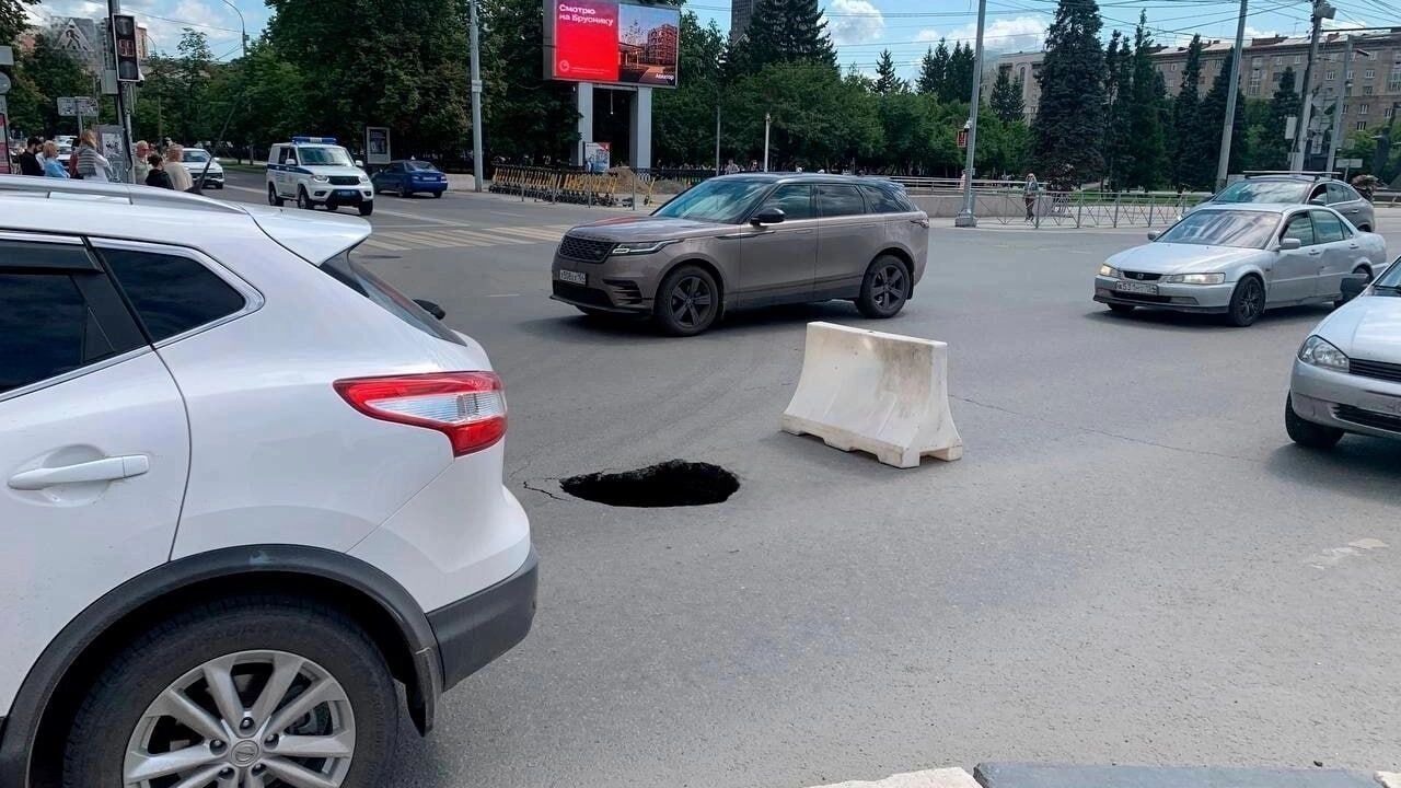 Новый провал образовался на Красном проспекте рядом с перекрёстком с улицей Орджоникидзе. Как сообщили очевидцы, опубликовавшие кадры с места происшествия, дефект образовался всего за одну ночь после продолжительных осадков.