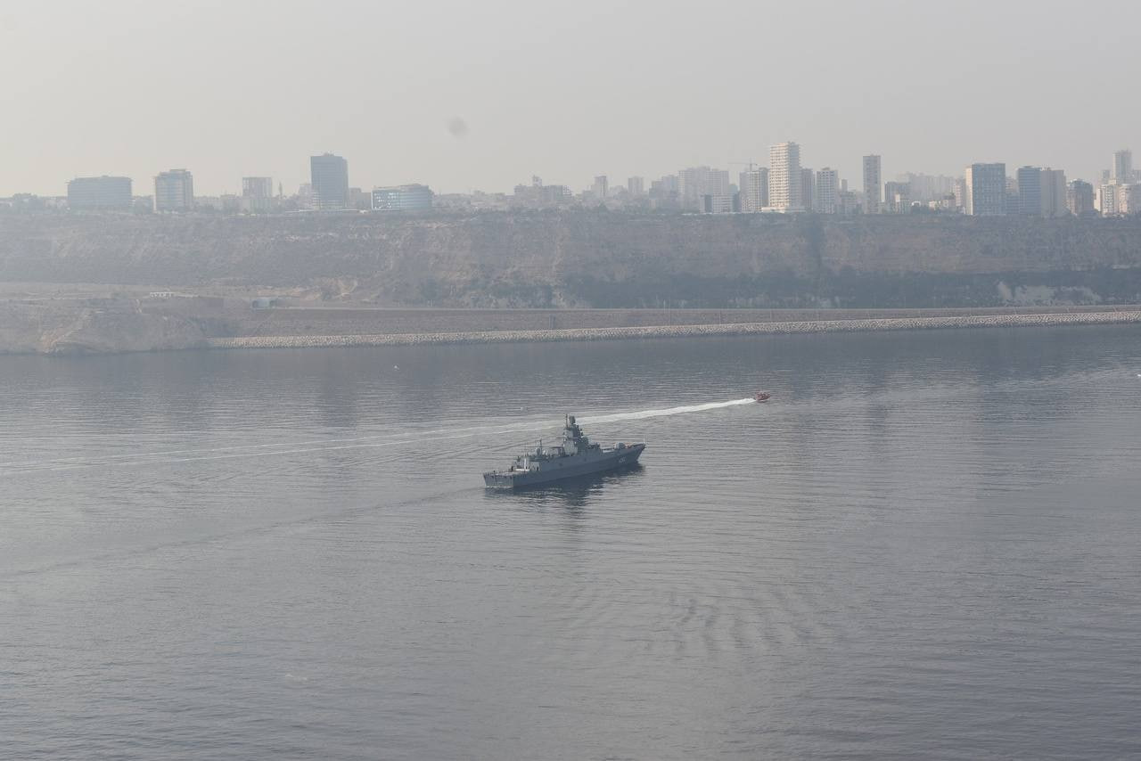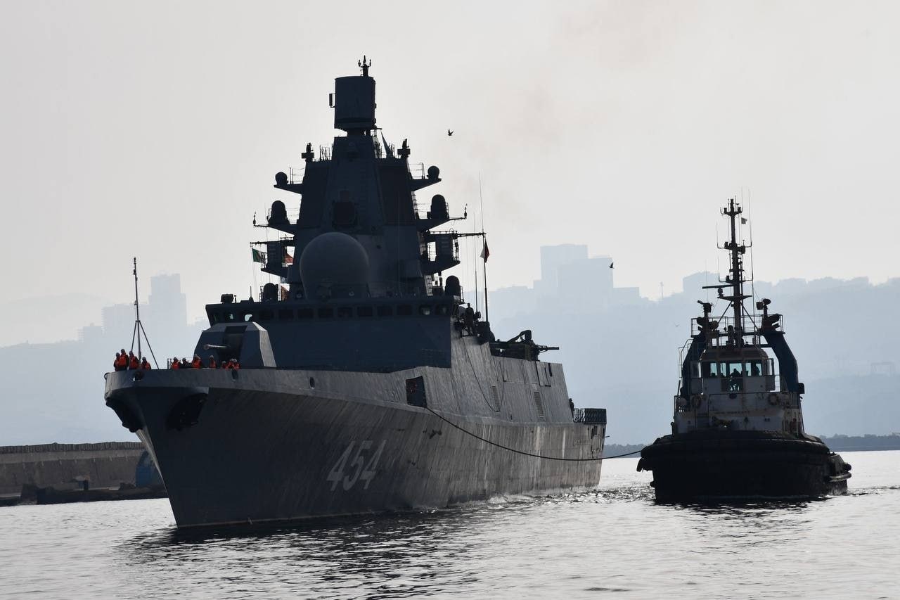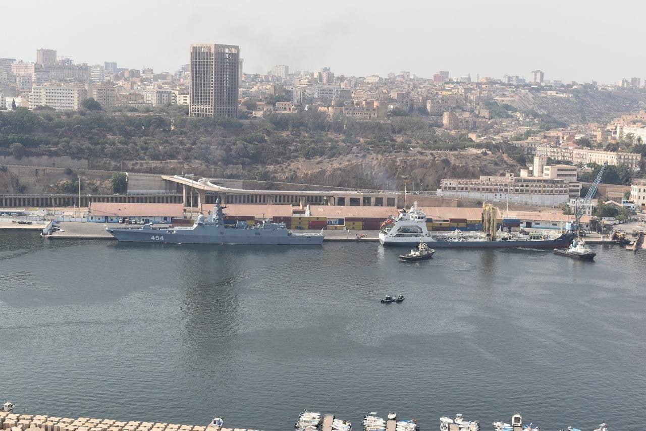 Российский фрегат Адмирал Горшков и судно обеспечения прибыли в Алжир, Средиземное море.