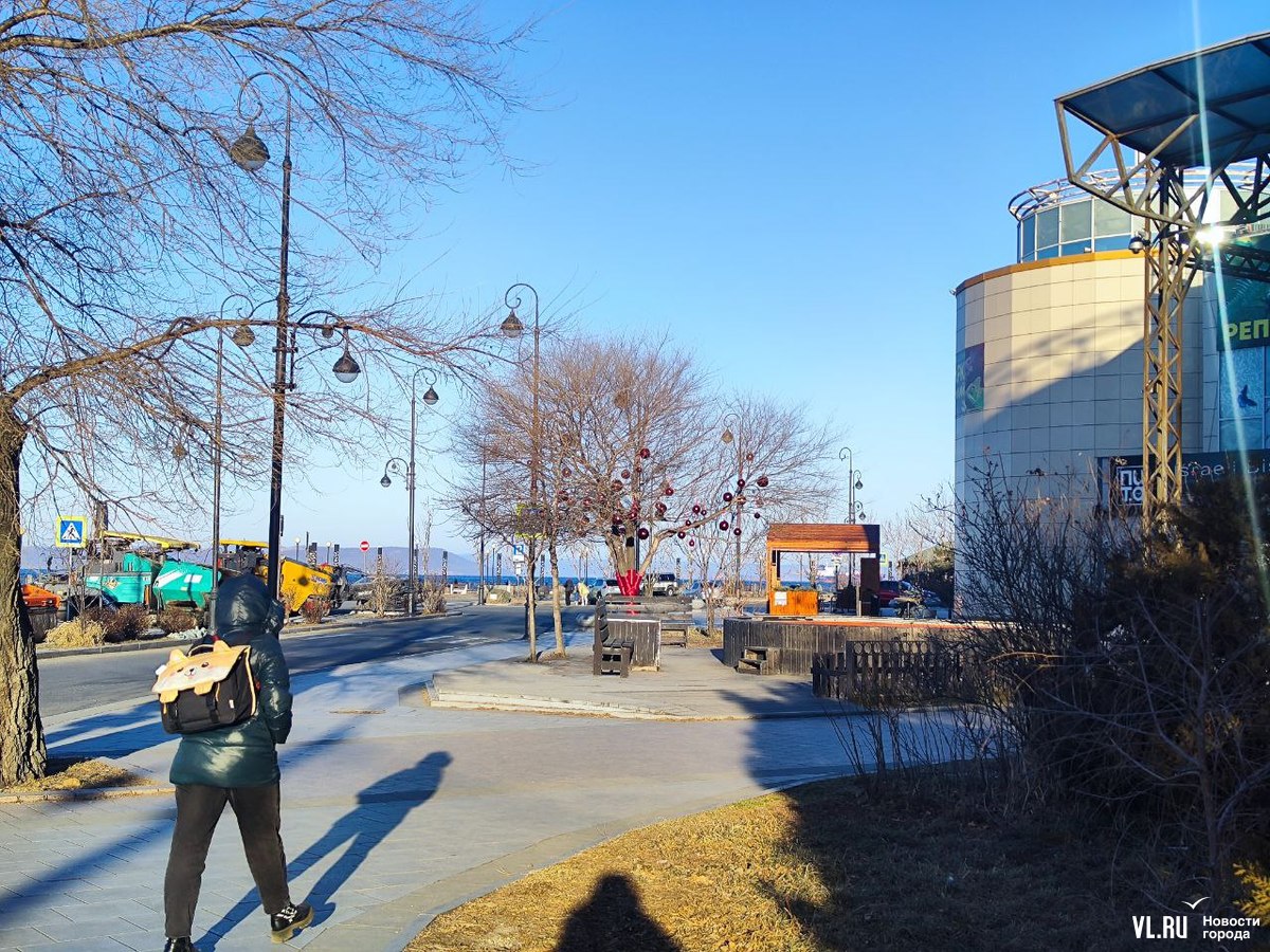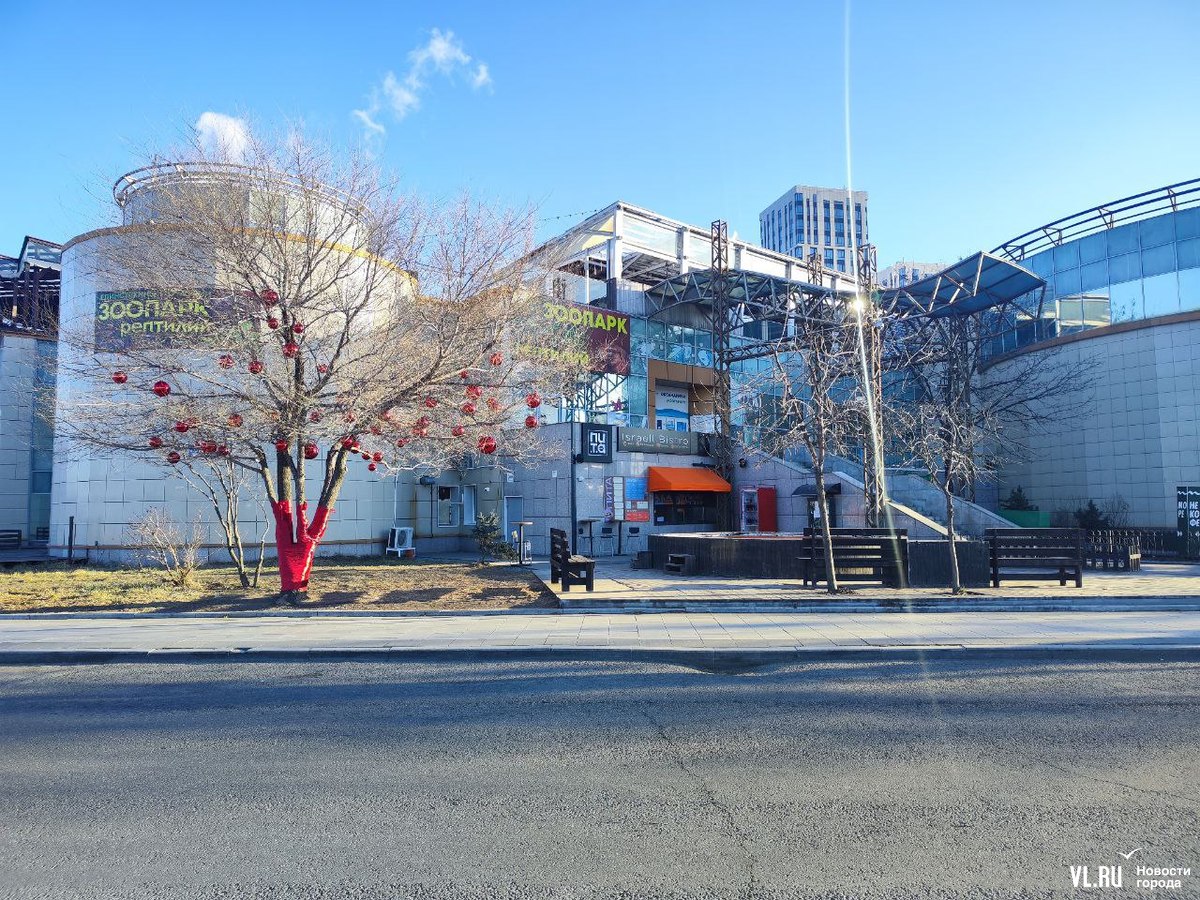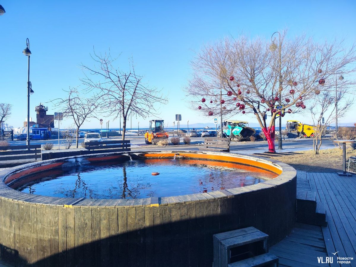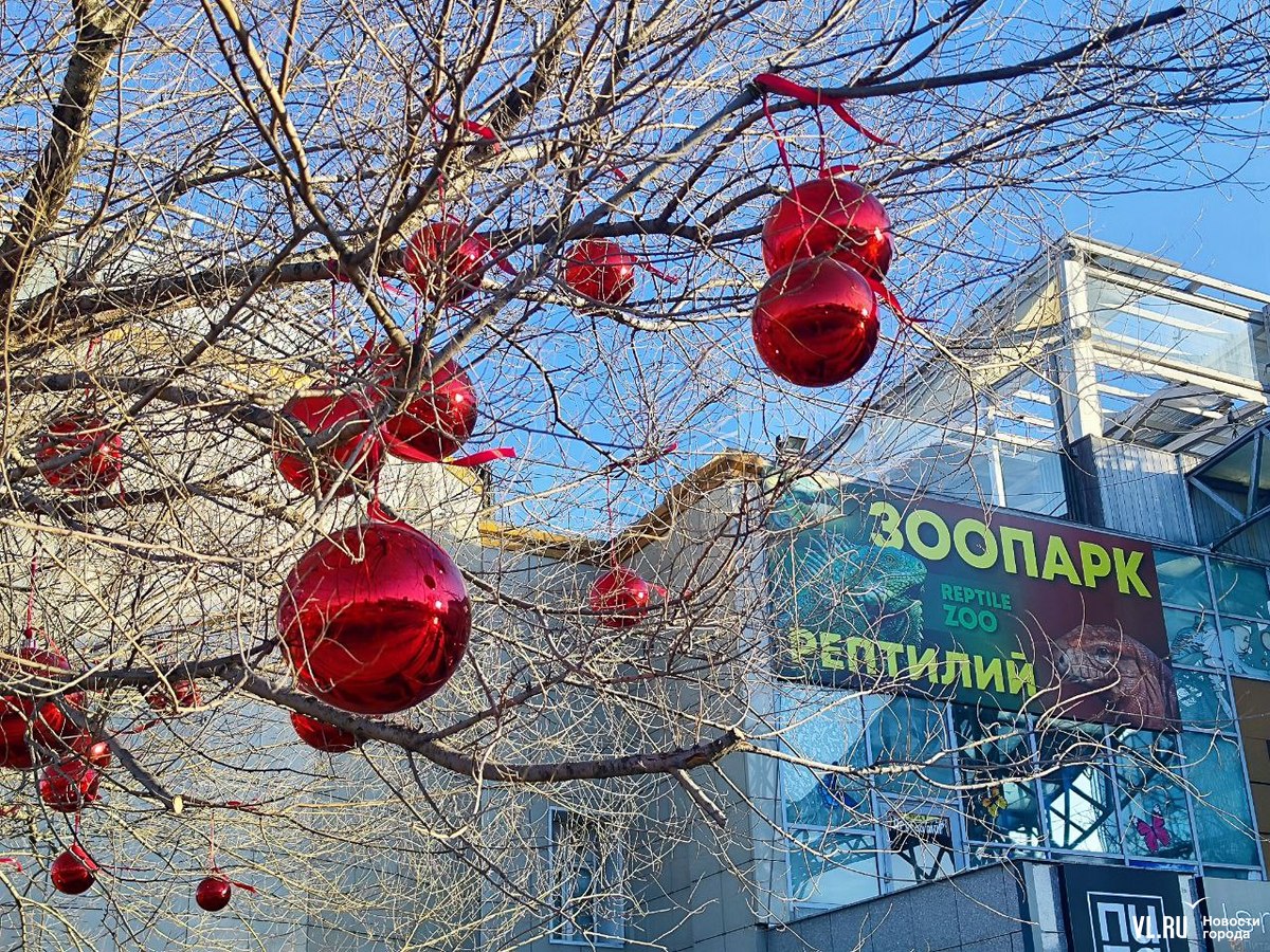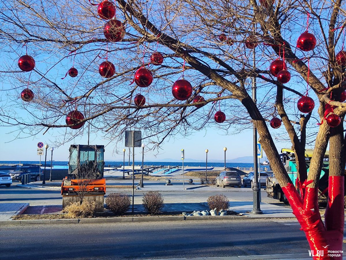 Уголок набережной на улице Батарейной в районе Владивостокского океанариума, где недавно открыли беседку с навесом, стал ещё уютнее. Здесь с помощью красных лент и огромных шаров украсили дерево, которое раскинуло свои ветви над бассейном с японскими карпами. Рыбки, кстати, всё ещё остаются в водоёме, несмотря на то, что он уже начал покрываться льдом. Владельцы рыб говорят, что заберут их на зимовку позже.