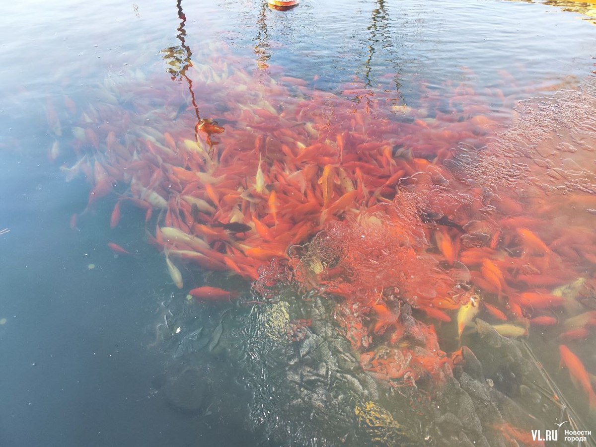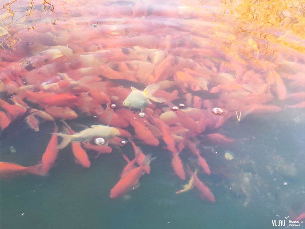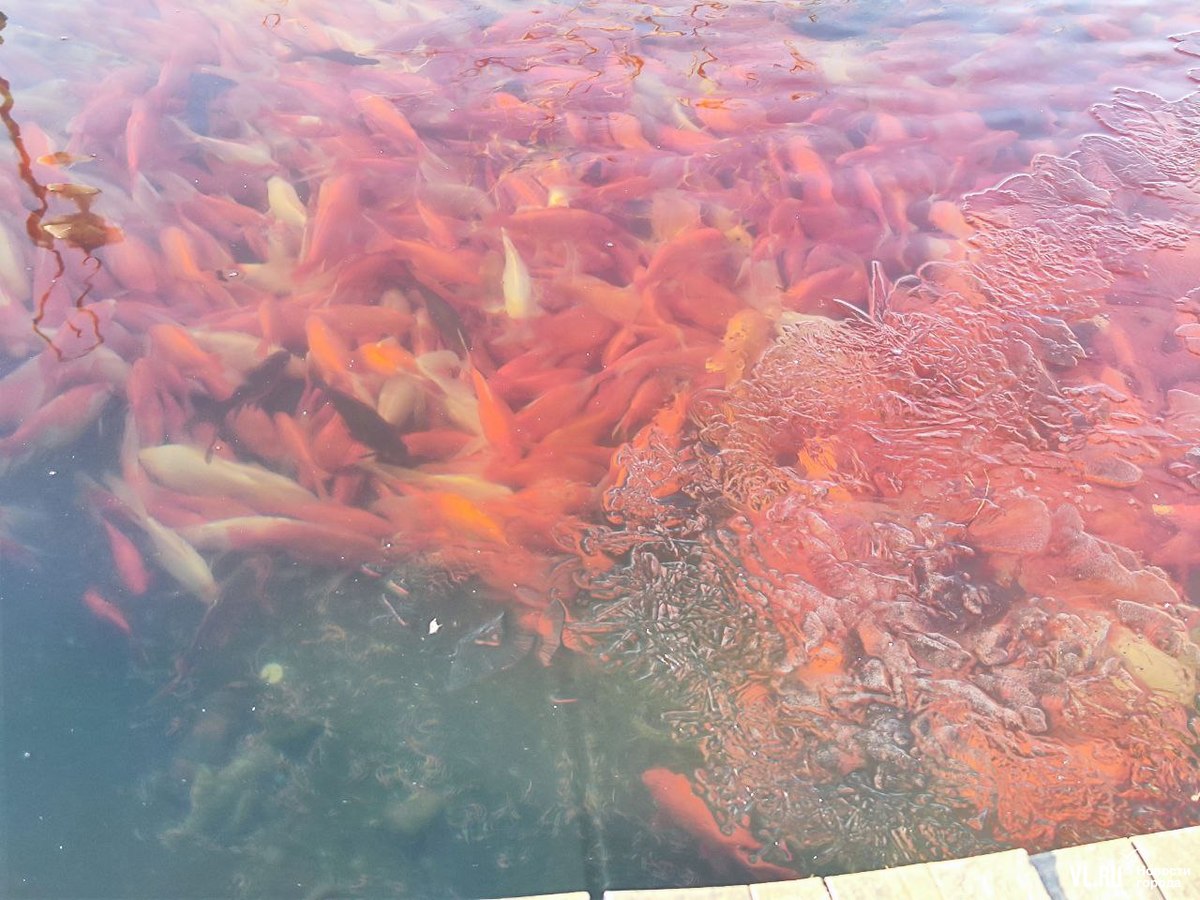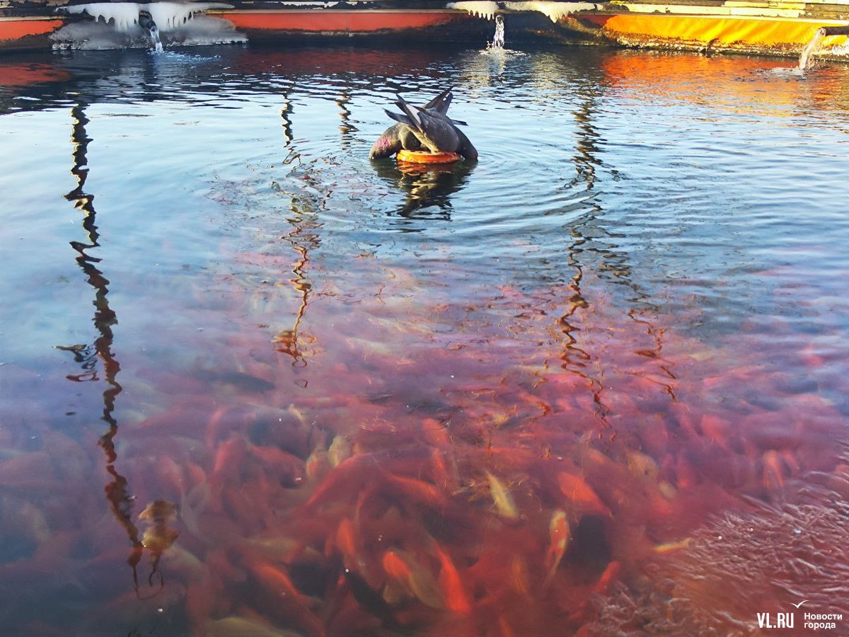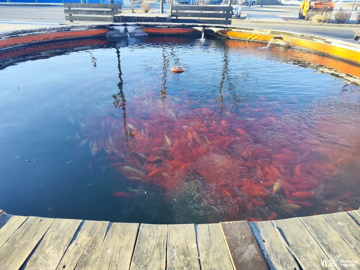 Ранее мы рассказывали, что эти и многие другие декоративные карпы во Владивостоке принадлежат директору крестьянско-фермерского хозяйства. Каждый год с наступлением зимы сердобольные горожане одолевают его вопросами, когда же рыбу уберут в тепло, и каждый год ему приходится объяснять одно и то же и в шутку предлагать неравнодушным людям спасать рыбу из всех озёр города.